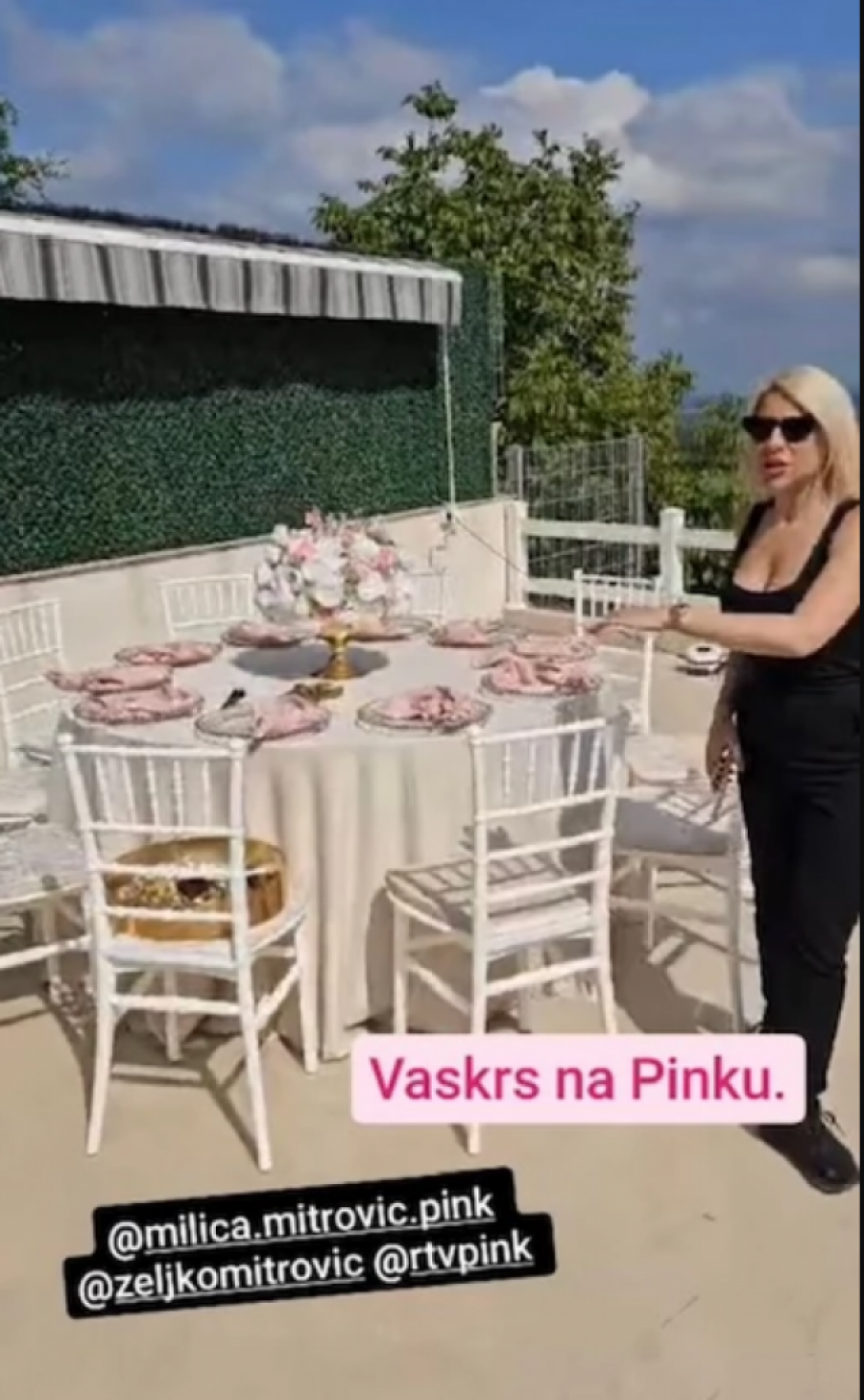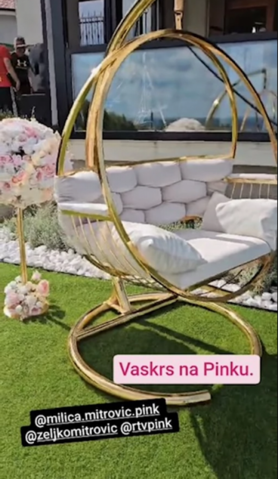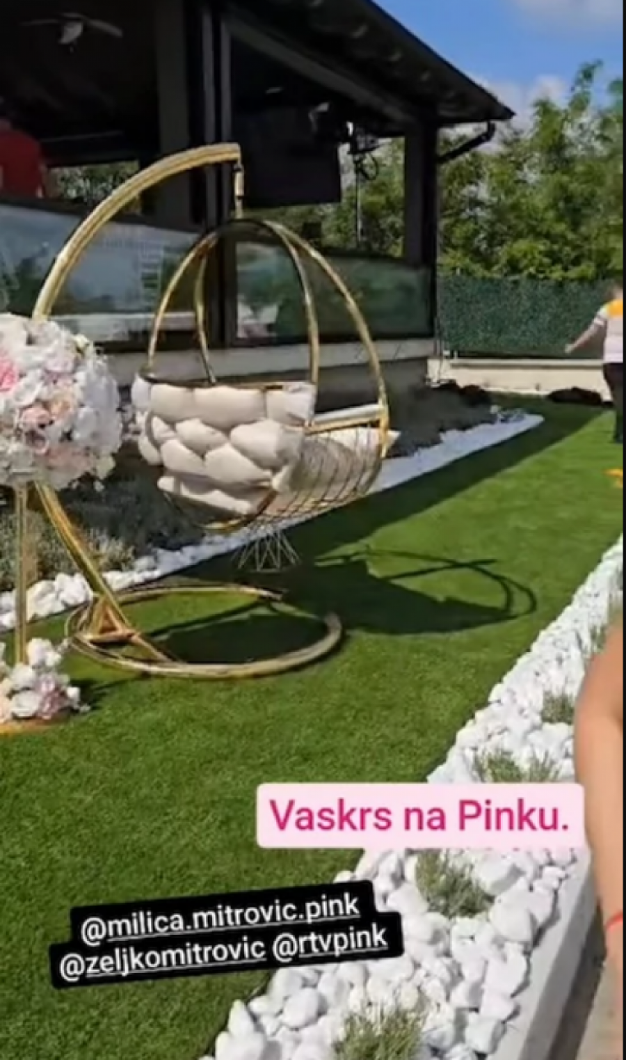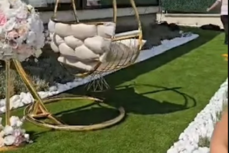 - Tu je i ljuljaška, pokažite i zeleni tepih, dekoracija još se sprema, radimo na tome. Tu će biti i deo za žurku, dok je gore sto gde će se održati svečani doručak, vaskršnji", rekla je Jovana u svom obraćanju.
