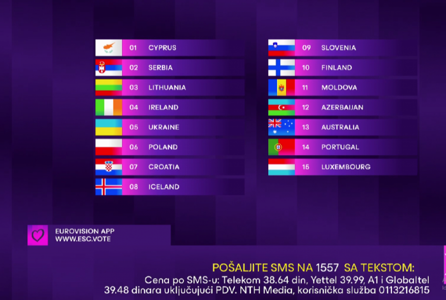 22:38 - Odrađena je rekapitulacija svih nastupa! Srbija večeras nastupa pod rednim brojem 2!