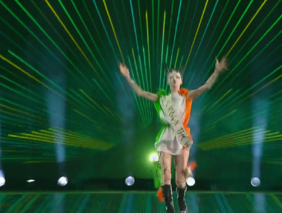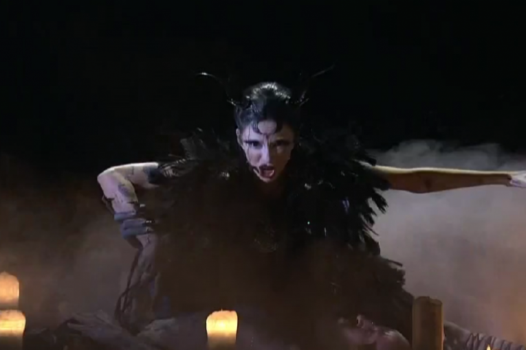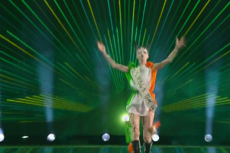 21:56 - Deseti na scenu izašli su predstavnici Irske. Bambi koji se izjašnjava kao ne binarna osoba ponovo je napravio dramatičan ritual nesrećne ljubavi. Porukom ,,Kruniši vešticu", mnogi su je povezali sa onostranim.