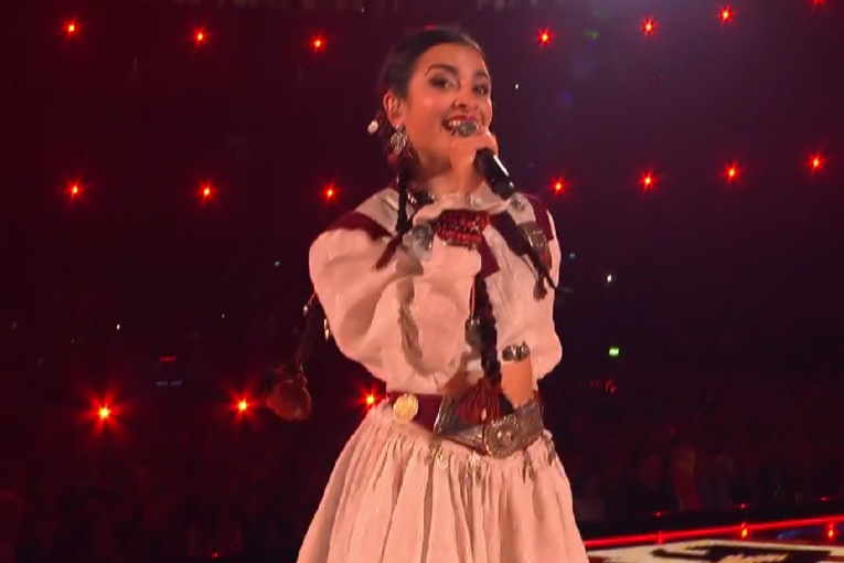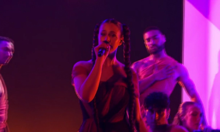 21:09 - Teya Dora izašla je sa srpskom zastavom. Ona večeras nastupa pod rednim brojem 16.