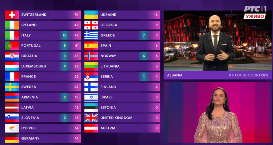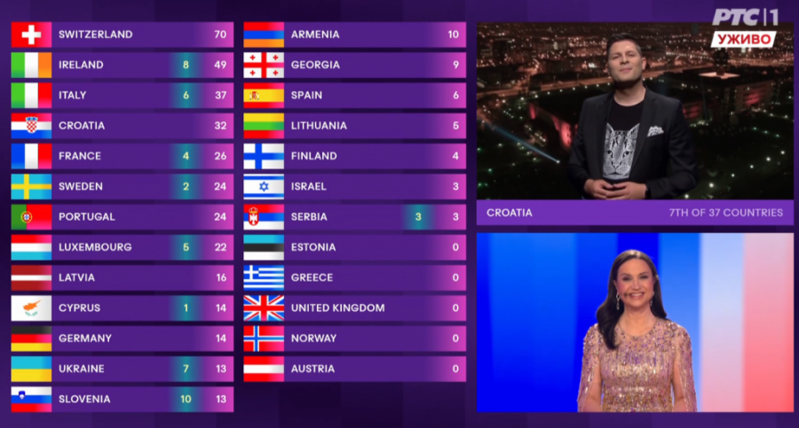00:27 - Irska je Srbiji dala 1 poen, dok nam je Kipar dao 5.