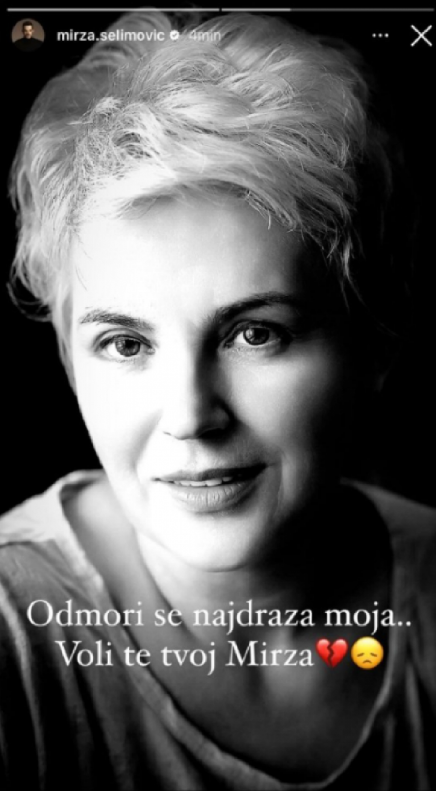 Danas je Mirza Selimović, popularni pevač, oprostio se od svoje majke, Nedrete Selimović, putem emotivne poruke na svom Instagram profilu. Podelio je crno-belu fotografiju svoje majke uz reči koje odaju poštovanje i ljubav prema njoj. Pored toga, pevač je objavio i jednu fotografiju iz detinjstva sa celom porodicom, dodatno naglašavajući važnost i bliskost porodičnih veza.