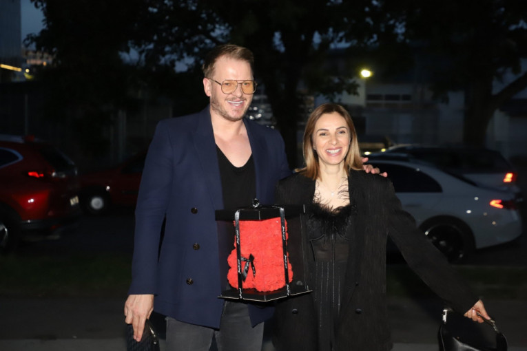 Posebno zanimljiv poklon donela je Marina Tadić, koja se pojavila sa poznatim šminkerom Dušanom Lazićem Lazom.