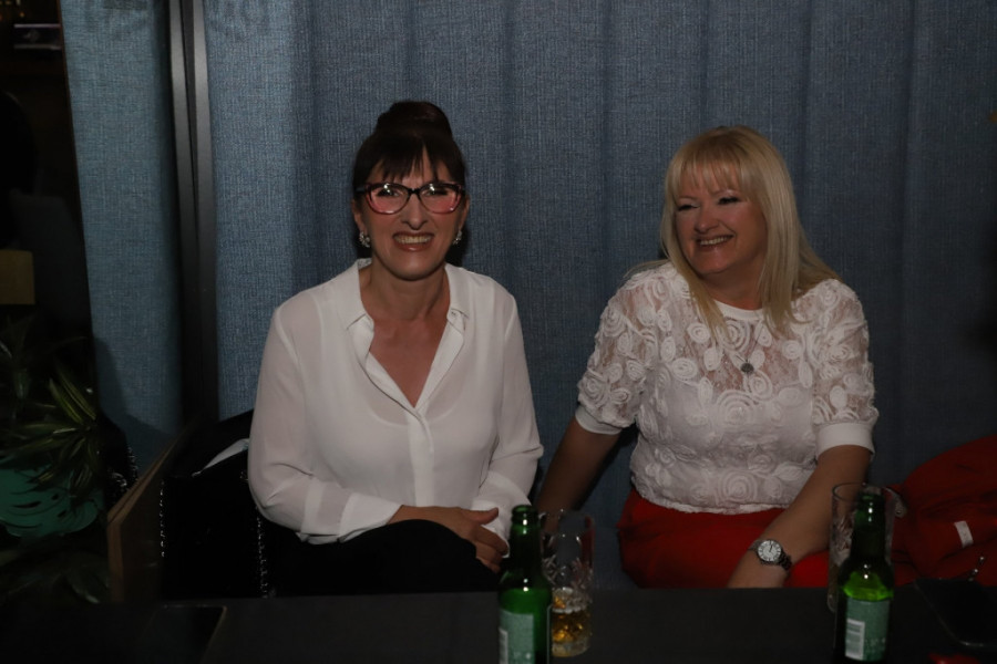 Goga Sekulić stigla je na promociju i donela svojoj koleginici korpu sa cvećem, a potom pozirala sa Anabelom Atijas. Anabela je nosila zanimljivu kratku haljinu sa životinjskim printom, koja je savršeno istakla njenu figuru.