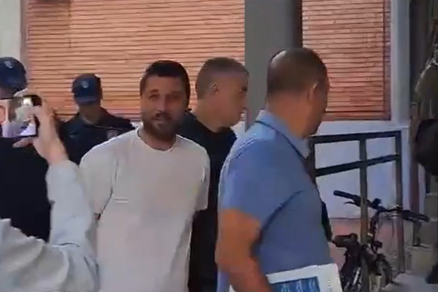 Marko Miljković, suprug poznate pevačice Lune Đogani, doveden je na saslušanje u Treće osnovno javno tužilaštvo u Beogradu, 15. maja malo posle 9 časova. Njegova odeća, koja je bila ista kao prilikom privođenja - patike, donji deo trenerke i prljava i iscepana majica, privukla je pažnju prisutnih. Foto: Republika.rs