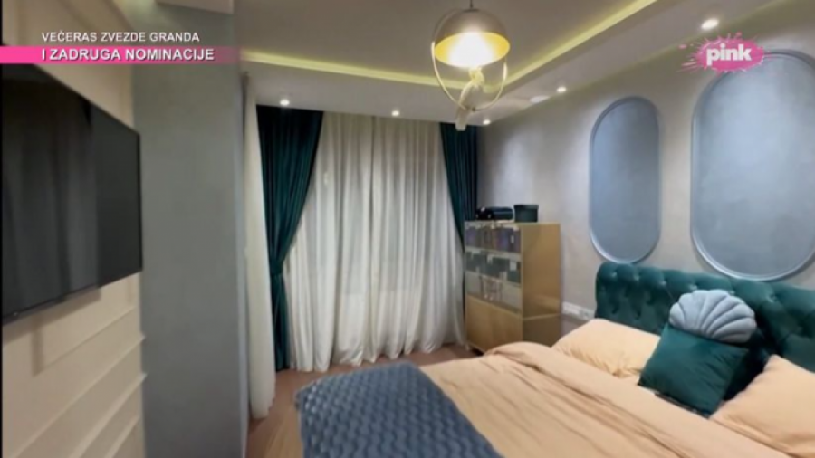 Stan je veliki, dominira zelena smaragdna boja, zlatne nijanse, luster od kristala, a najviše pažnje izaziva zlatna WC šolja u kupatilu.