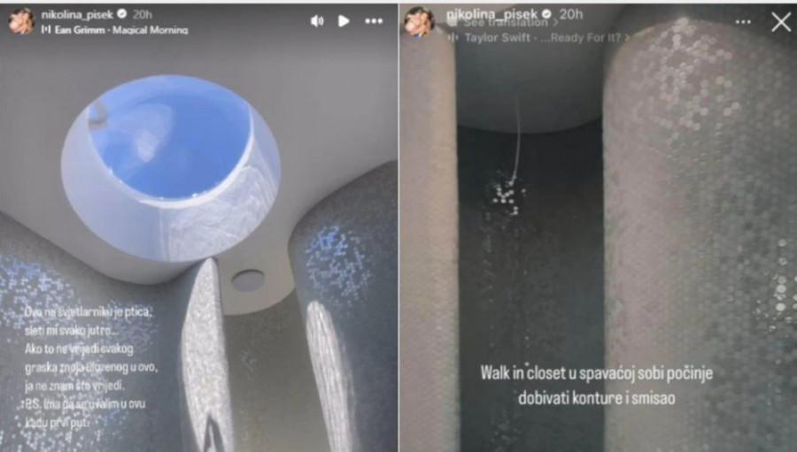 Voditeljka Nikolina Pišek već neko vreme na društvenim mrežama pokazuje kako izgleda njena vila koju sređuje i dekoriše po svojim merilima, a sada je mnoge ostavilo bez teksta kupatilo! Naime, Nikolina je rešila da na plafonu ima otvor kako bi dnevna svetlost i pogled na nebo bio u svakom trenutku dostupan, pa je sada tako pokazala i da joj jedna ptica stalno sleće na taj deo vile. Ona je ponosna na pogled koji je uspela da otvori u kupatilu, pa je napisala da je vredno svake kapi znoja.