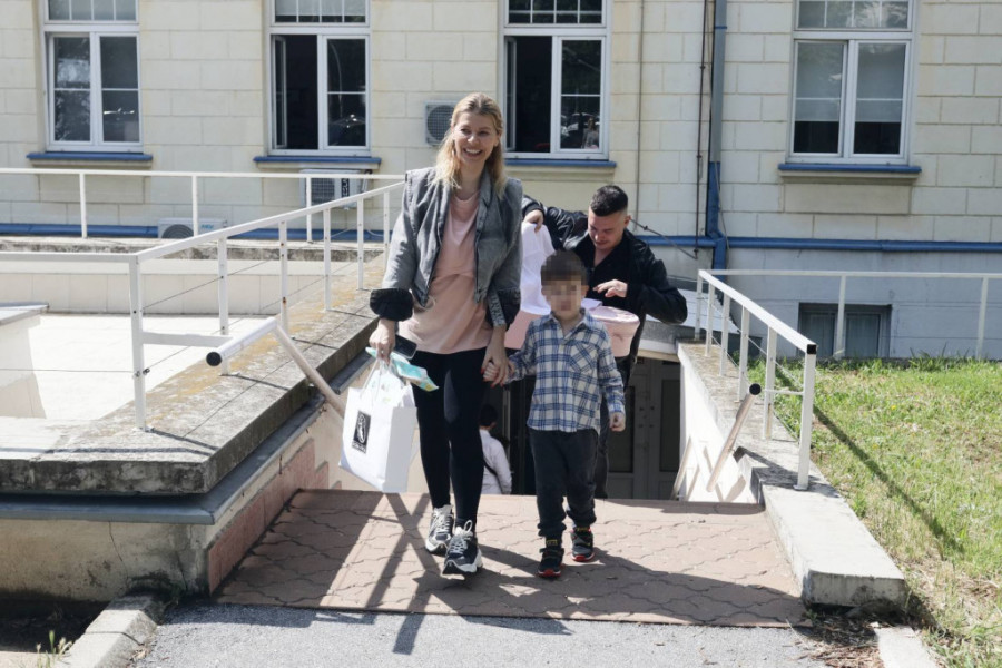 Danijela Karić izlazi iz porodilišta, stigao suprug Ivan Mileusnić i sin Maksim