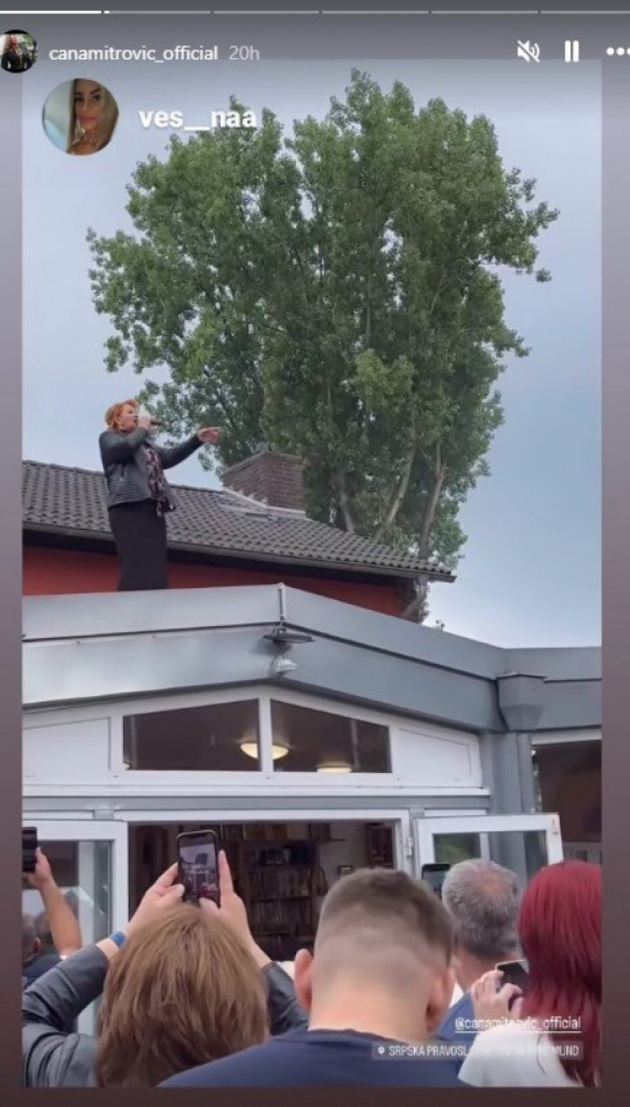 Pevačica Stanojka Mitrović, poznatija kao Ćana, više puta je pevala na neobičnim mestima, a sada je napravila karambol kad se popela na jedan krov! Naime, ona je nastupala na tradicionalnom crkveno-narodnom zboru u porti Hrama Svetog apostola Luke u Dortmundu, pa je u jednom momentu počela da se penje, a publika se okupila da bi prisustvovala spektaklu. Prisutni su pali u trans kad je Ćana zapevala pesmu "Srpkinja je mene majka rodila".