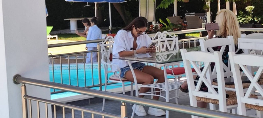 Pevačica Milena Ćeranić uživa već neko vreme u Grčkoj, a naša ekipa uslikala je pevačicu u trenutku dok je razgovarala telefonom, vidno nervozna! Naime, Milena se odmarala pored bazena, ali je u jednom trenutku počela da se raspravlja sa osobom koja je bila sa druge strane linije, te su i drugi gosti u rizortu uspeli da čuju svađicu. Čula se i neka psovka, ali se na kraju Milena i smejala.