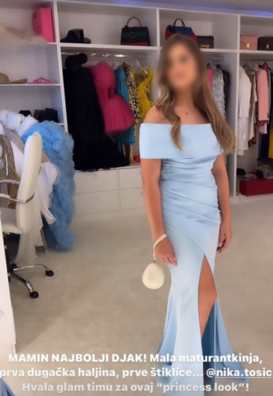 Pop diva Jelena Karleuša nije krila svoje oduševljenje povodom ćerkinog značajnog dana. Upravo je na društvenim mrežama podelila snimke svoje ćerke Nike Tošić, koja je bila spremna za malu maturu. Nika je zablistala u dugoj haljini koju je specijalno dizajnirao Jelenin prijatelj, a ponosna mama nije propustila priliku da istakne koliko je srećna zbog ovog važnog događaja.