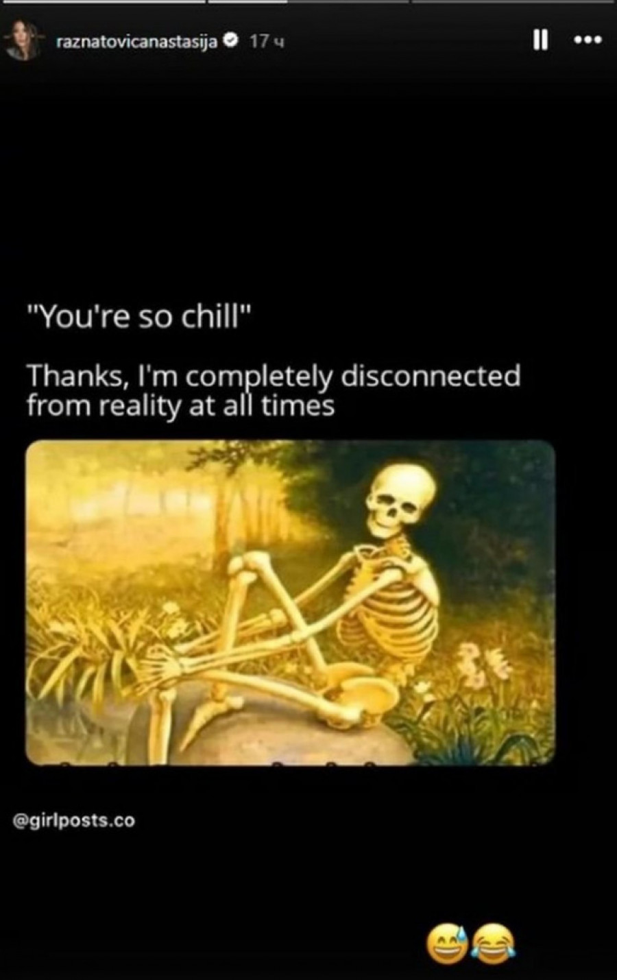 - Tako si opuštena. Hvala, to je zato što sam diskonektovana iz realnosti većinu vremena - napisala je Anastasija u opisu.