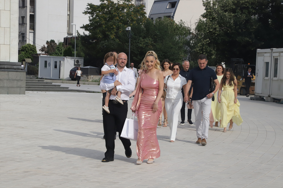 Pevačica se pojavila u uskoj roze haljini, a frizuru je pokupila u rep. Pevačica nije skidala osmeh sa lica. Podsećanja radi, Maja i Alen se vole skoro dve decenije, a upoznali su se kad je ona imala 17 godina.