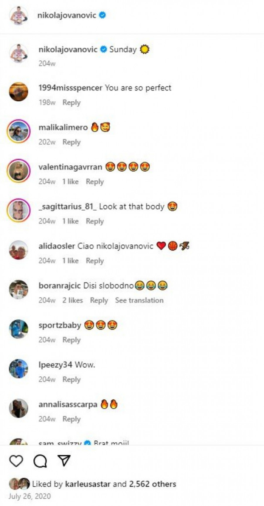 Pevačica Jelena Karleuša već je pričala o tome da se uveli razvodi od sportiste Duška Tošića, koji ju je navodno zatekao u vili sa košarkašem Nikolom Jovanovićem. Na društvenim mrežama sada su se pojavili i dokazi o tome kada je pevačica bacila oko na Jovanovića, pa se jasno vidi da mu je lajkovala slike još 2020 godine!