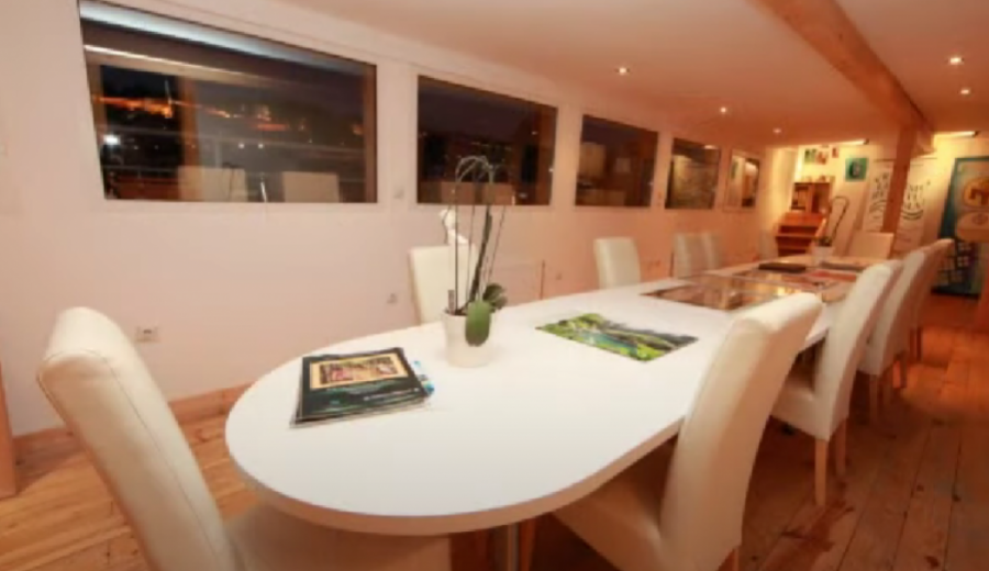 Pored biblioteke nalazi se bicikl za kućno vežbanje, koji vlasnica modne agencije "Miss Yu" neretko vozi po keju kada je lepo vreme. Prostrana trpezarija, koja je skoro u nivou reke, pruža umirujući pogled na vodu, gde je de Vinča svakog jutra i večeri uživala u kafi.
