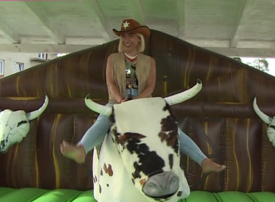 - Nemojte ga jače, molim vas - vikala je voditeljka Pinka, dok se čvrsto držala za rogove mehaničkog bika.