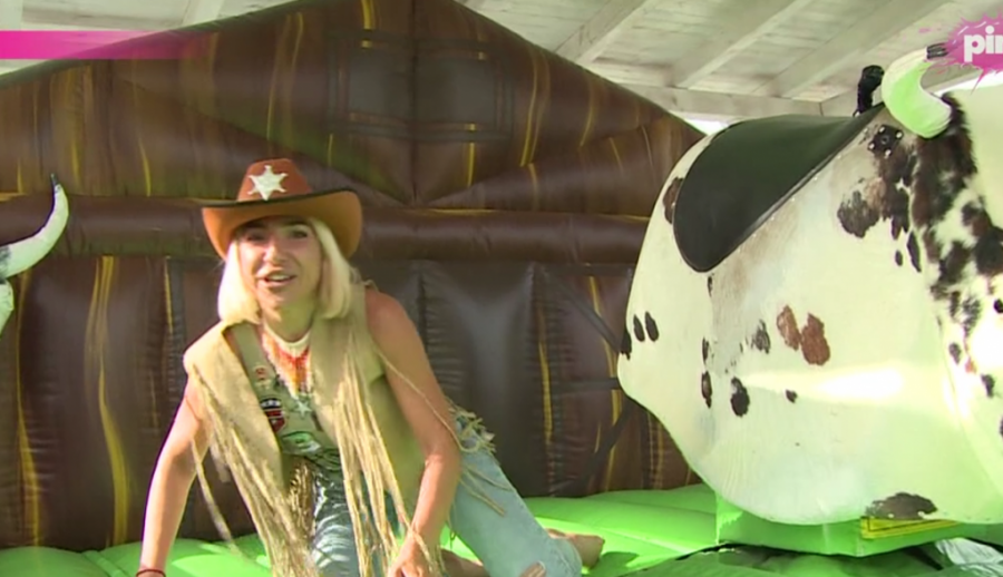 Jovana Jeremić jaše bika u emisiji "Amidži šou"