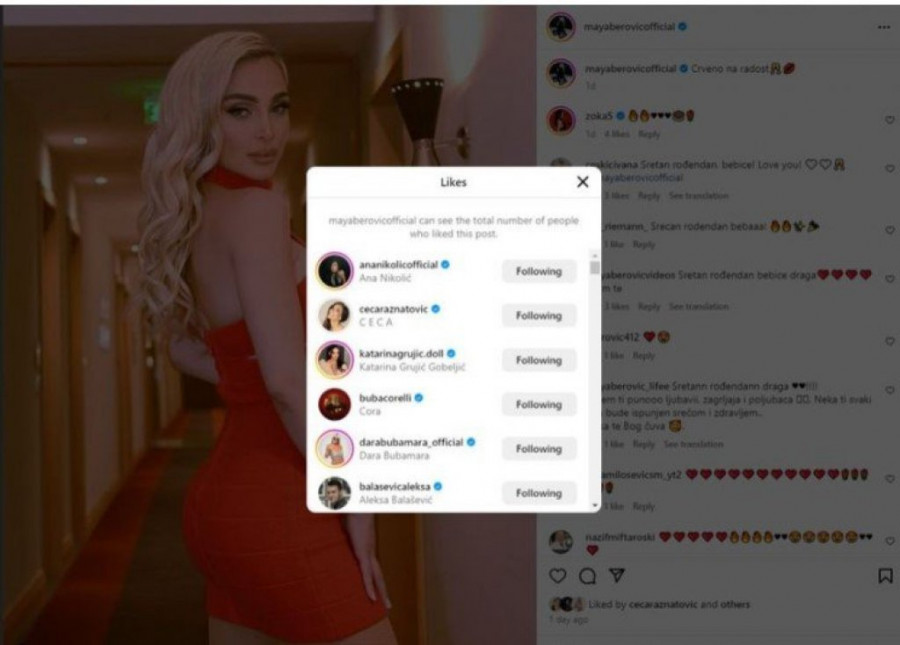 Popularna pevačica Maja Berović privukla je pažnju svojih obožavalaca objavom provokativne fotografije na Instagramu. Pozirajući u prelepoj crvenoj haljini, Maja je istakla svoju zanosnu figuru, a uz fotografiju je napisala "Crveno na radost". Ova objava izazvala je veliki broj lajkova, a među njima se izdvojio i lajk Bube Korelija, što je izazvalo posebnu pažnju s obzirom na njihovu prethodnu saradnju.