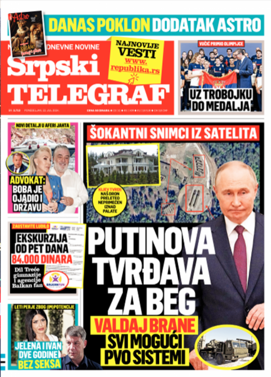 Srpski telegraf u izdanju za ponedeljak 22.jul donosi pregršt važnih i interesantnih priča!