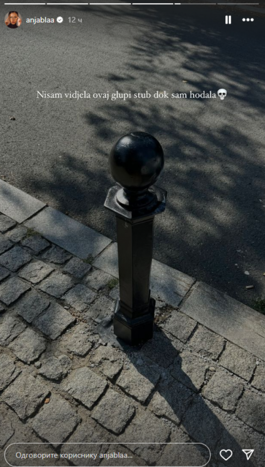 - Nisam videla stub dok sam hodala. S obzirom da sam mislila da sam slomila, ovo i nije strašno - napisala je Anja uz fotografije modrica.