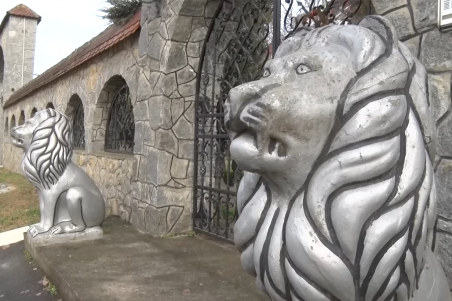 Odman ispred kapije primetna su dva velika gipsana lava, a celo imanje opasano je velikom ogradom od masivnog kamena.