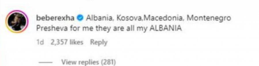 Javnost je posebno zaintrigirala izjava Bebe Rekse u kojoj ističe da su okolne zemlje "njena Albanija". U komentaru ispod svoje objave, pevačica je napisala: "Albanija, Kosovo, Makedonija, Crna Gora, Preševo, sve je to za mene moja Albanija".