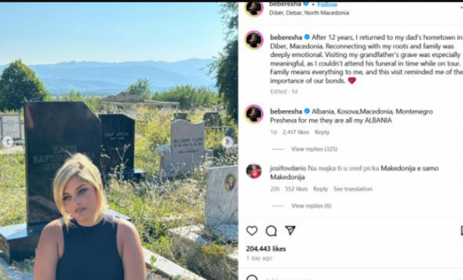 - Posle 12 godina vratila sam se u tatin rodni grad Debru, u Severnoj Makedoniji. Ponovno povezivanje sa mojim korenima i porodicom bilo je duboko emotivno. Poseta grobu mog dede bila je posebno značajna, jer nisam mogla da prisustvujem njegovoj sahrani jer sam bila na turneji. Porodica mi znači sve, a ova poseta me podsetila na važnost naših veza - napisala je pevačica u opisu objave,gde sedi na grobu svoga dede.