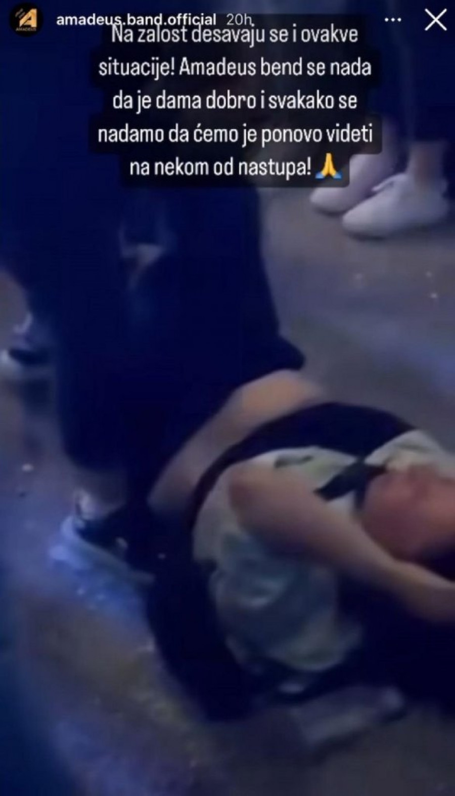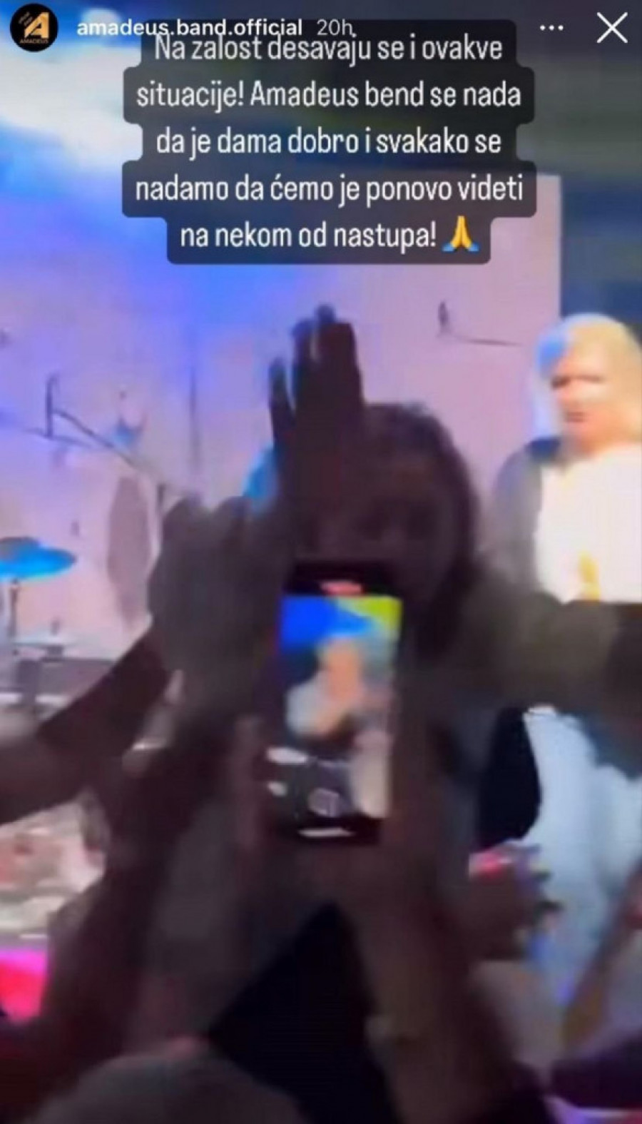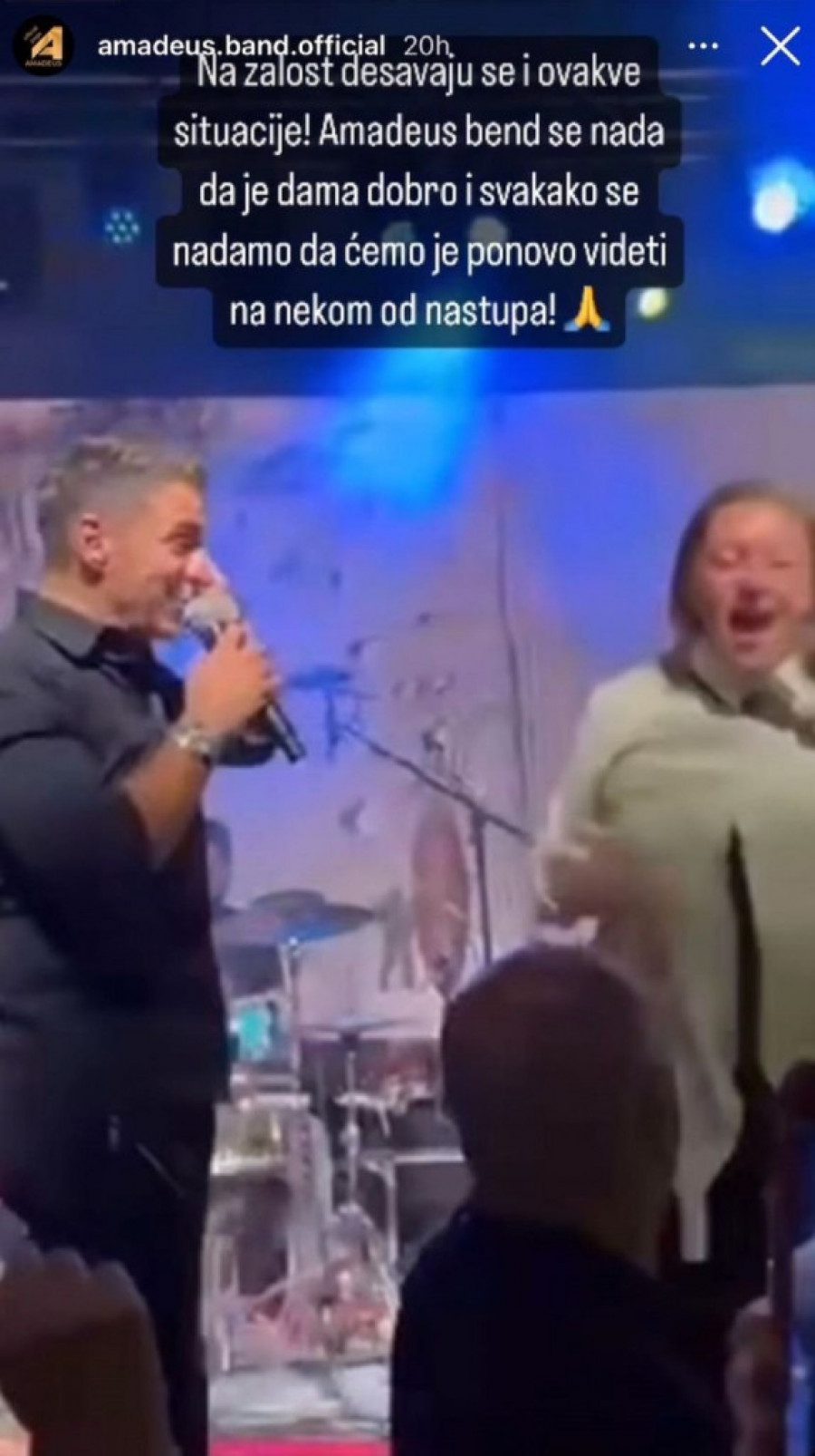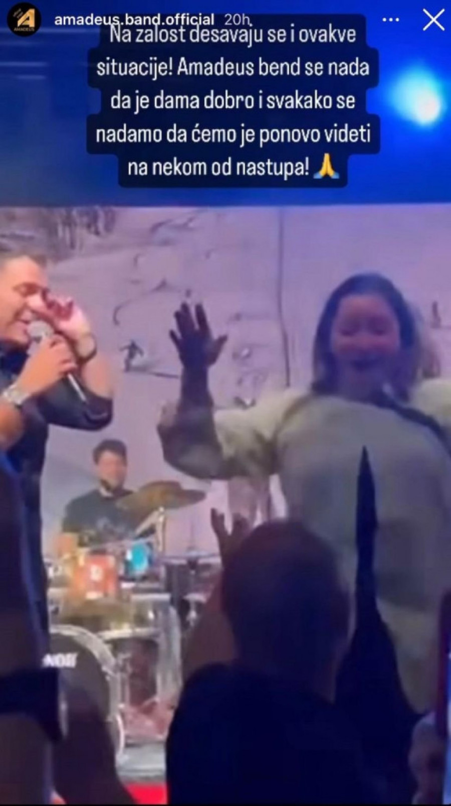 - Nažalost, dešavaju se i ovakve situacije! Amadeus bend se nada da je dama dobro i svakako se nadamo da ćemo je ponovo videti na nekom od nastupa - poručili su momci iz Amadeus benda u svojoj Instagram objavi, uz snimak incidenta koji je za kratko vreme postao viralan na internetu.