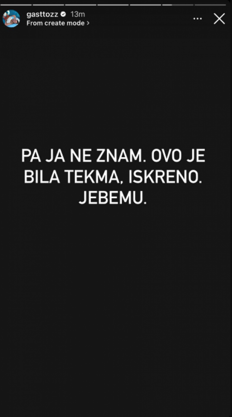 - Pa, ja ne znam. Ovo je bila tekma, iskreno. Je*em mu... - napisao je Gastoz.
