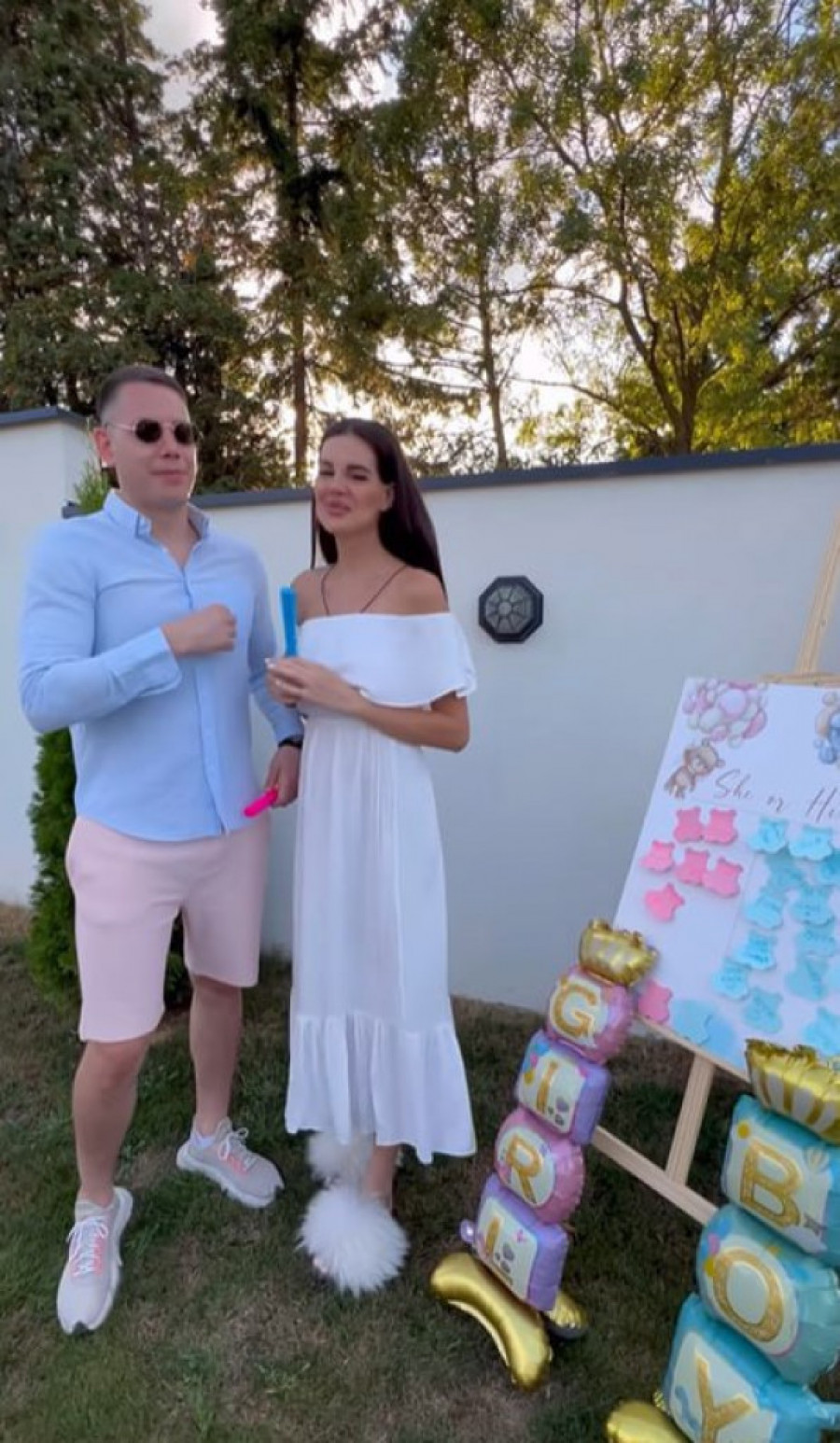Da bi podelili radost i uzbuđenje sa svojim najbližima, Bogdan i Jovana su organizovali posebnu proslavu poznatu kao "baby shower". Na ovoj zabavi, koja je postala moderna tradicija za buduće roditelje, porodice Ljubisavljević i Srejović okupile su se kako bi otkrile pol svoje buduće bebe uz pomoć različitih rekvizita i igara. Ova vrsta zabave obično uključuje igre i aktivnosti koje pomažu u otkrivanju pola bebe na kreativan i zabavan način. Okupljena porodica i prijatelji su tom prilikom dali predloge imena za bebu, a Bogdan, koji je poznat kao veliki vernik i dobrotvor, se pomolio pre otkrivanja pola.
