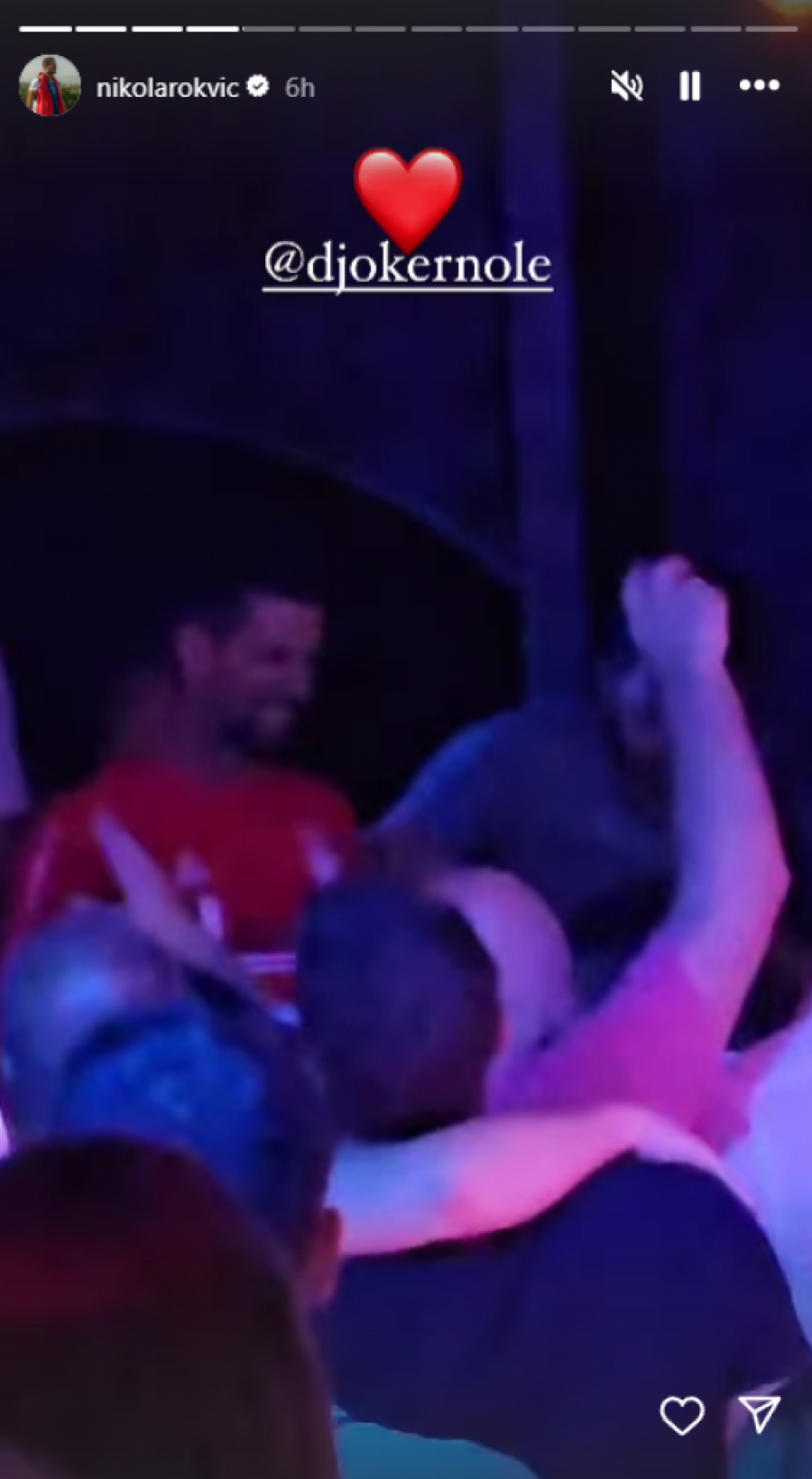 Nole i njegova supruga Jelena Đoković su među najveselijima na proslavi, a posebno su se razigrali kad je pušten hit devedesetih "Tek je 12 sati". U jednom trenutku, ponesen bitom pesme i dobrom atmosferom, Nole je krenuo da skida majicu, ali se onda ipak zaustavio i nasmejao.
