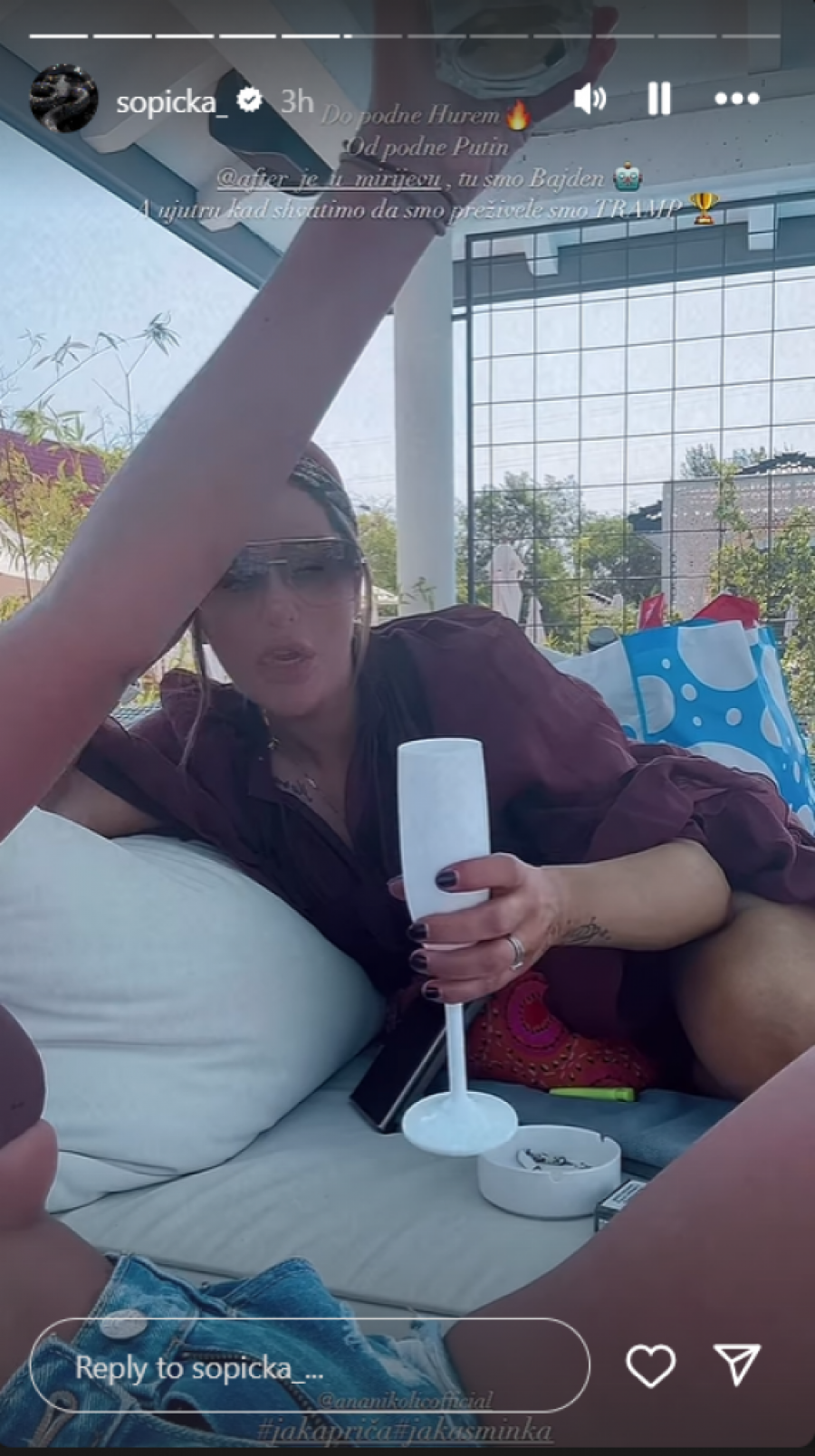 - Ivana nam je do podne Hurem, od podne Putin, after je u Mirijevu, tu smo Bajden, a ujutru kad shvatimo da smo preživele smo Tramp - nabrajala je Ana, a Đedović je podelio njihov snimak i dodao: