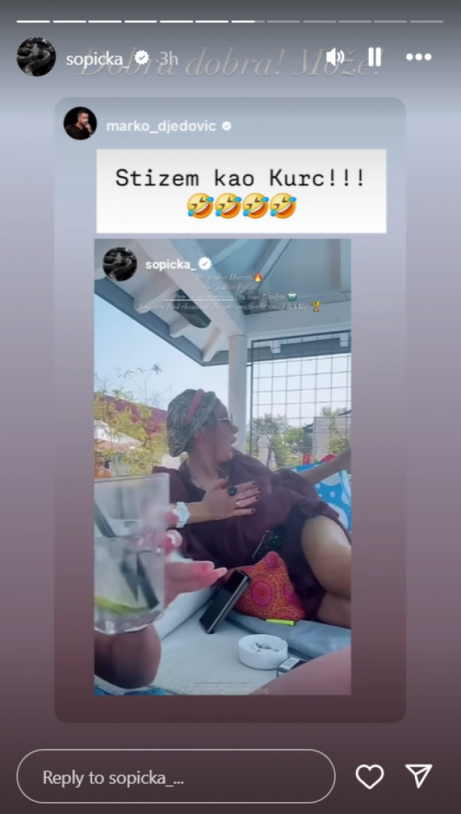 Njih dve su se skinule u kupaće kostime i prvo nazdravljale na ležaljkama, a zatim ušle u bazen, odakle su u Instagram priči podelile vrele fotke, koje su mnogi komentarisali i šerovali. Popularna pevačica je na snimku koji je podelila Ivana zbijala šale i na sebi svojstven način karikirala neke trenutno aktuelne fore, a u celu zabavu se putem svog Instagrama priključio i Ivanin kolega Marko Đedović.