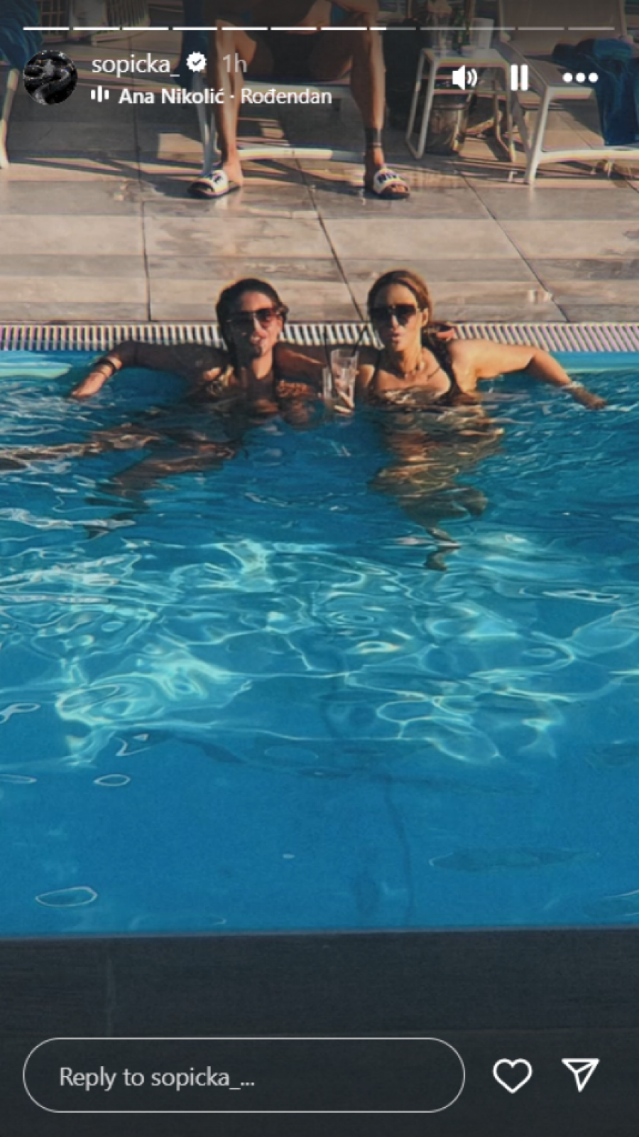 Voditeljka Pinka Ivana Šopić se na svom godišnjem odmoru druži sa poznatom pevačicom Anom Nikolić sa kojom je uživala na jednom bazenu.