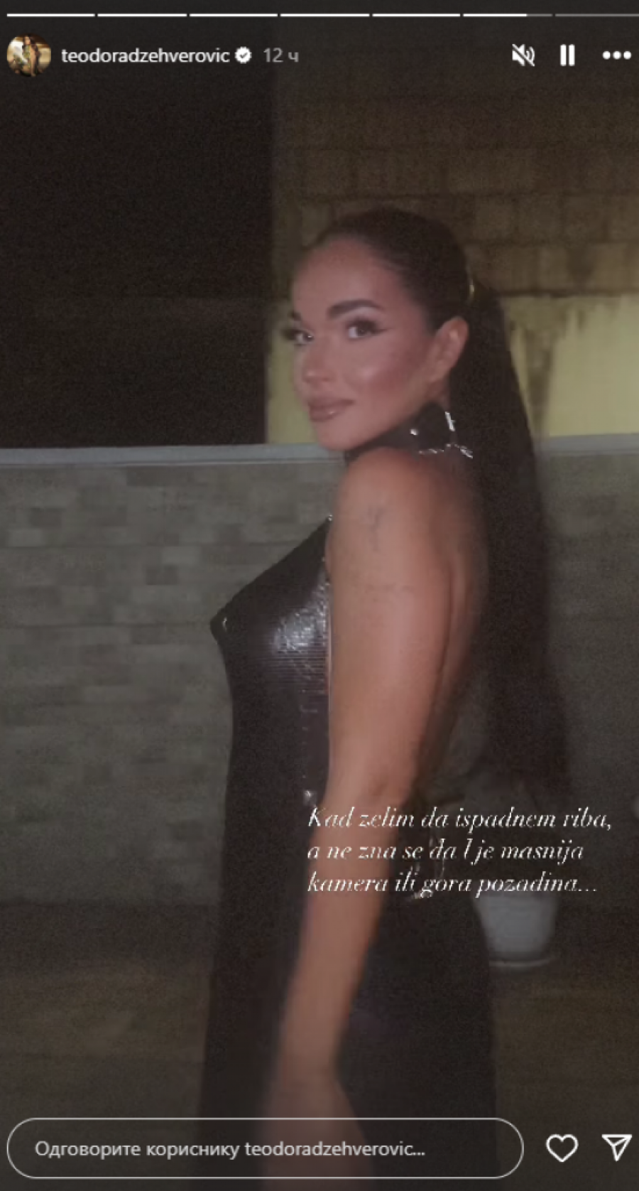 Teodora je aktivnija nego ikada na Instagramu, pa se neretko oglašava i odgovara na prozivke i pitanja pratilaca, a mnogi su ovaj njen opis videa shvatili vrlo ironično, s obzirom da je u svakom slučaju izdominirala na snimku, bez obzira na mutnu kameru i pozadinu, koja joj nije bila po ukusu.