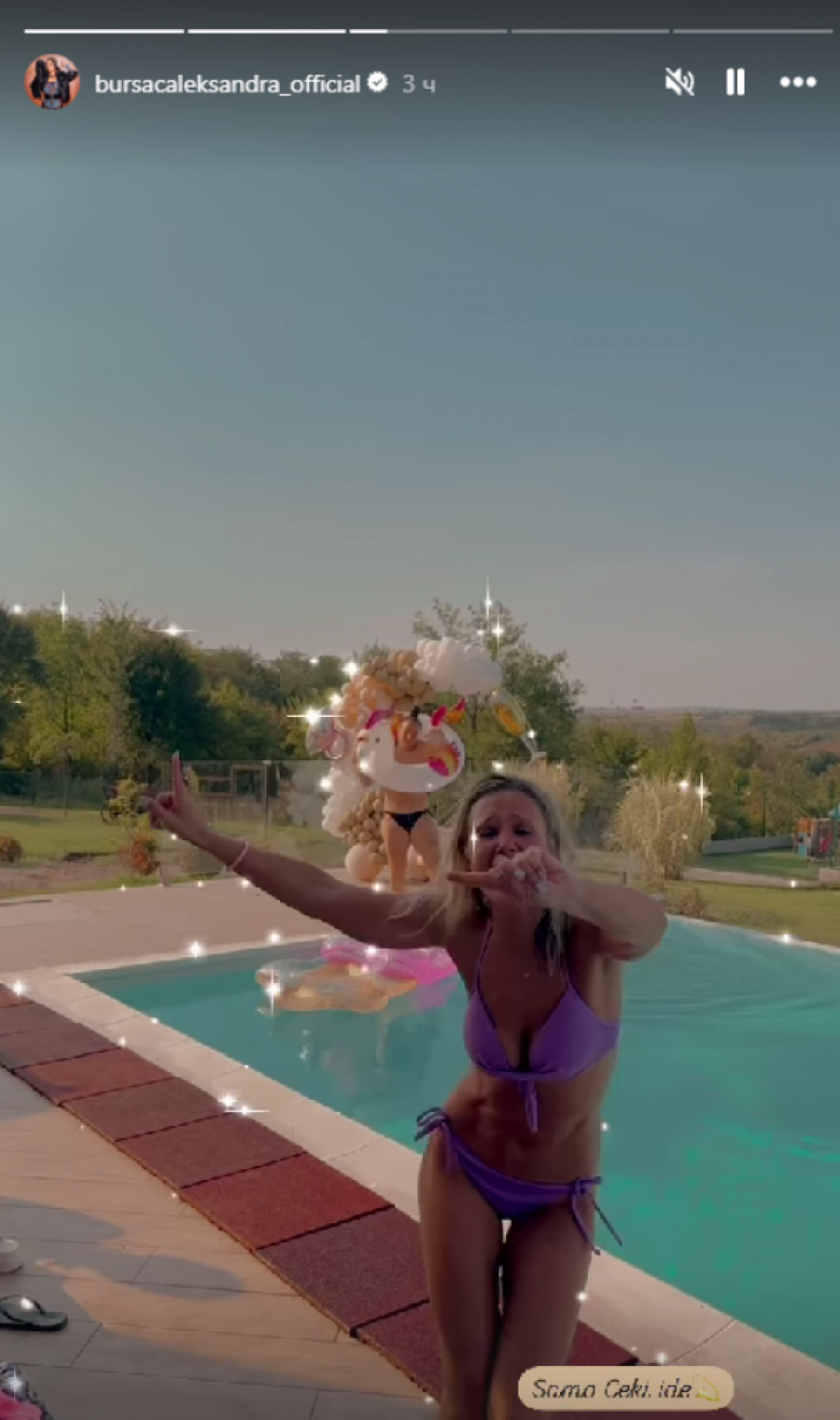 Pevačica Aleksandra Bursać nedavno je obelodanila vezu sa 10 godina mlađim kolegom Stevanom Sekulićem, a nedavno su se verili. Očekujući venčanje, Bursać je organizovala devojačko veče pored bazena, a detalje ove proslave podelila je na svom Instagram profilu.