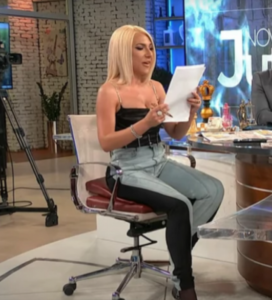 Naime, Jovana često ustaje i kreće se po studiju tokom emisije, a posebno je privukla pažnju kada se okrenula leđima kameri u ovakvim farmerkama, koje je kombinovala sa crnom majicom ističući tako sve obline.