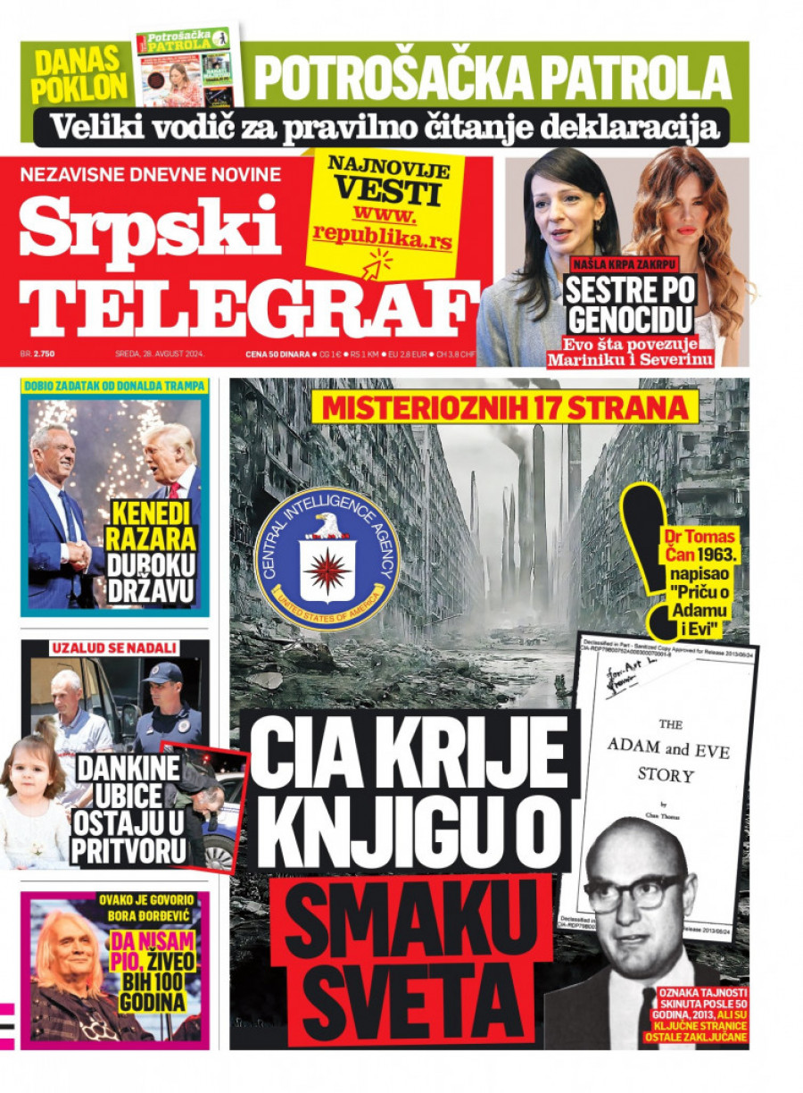 Srpski telegraf u izdanju za sredu 28. avgust donosi pregršt važnih i interesantnih priča!
