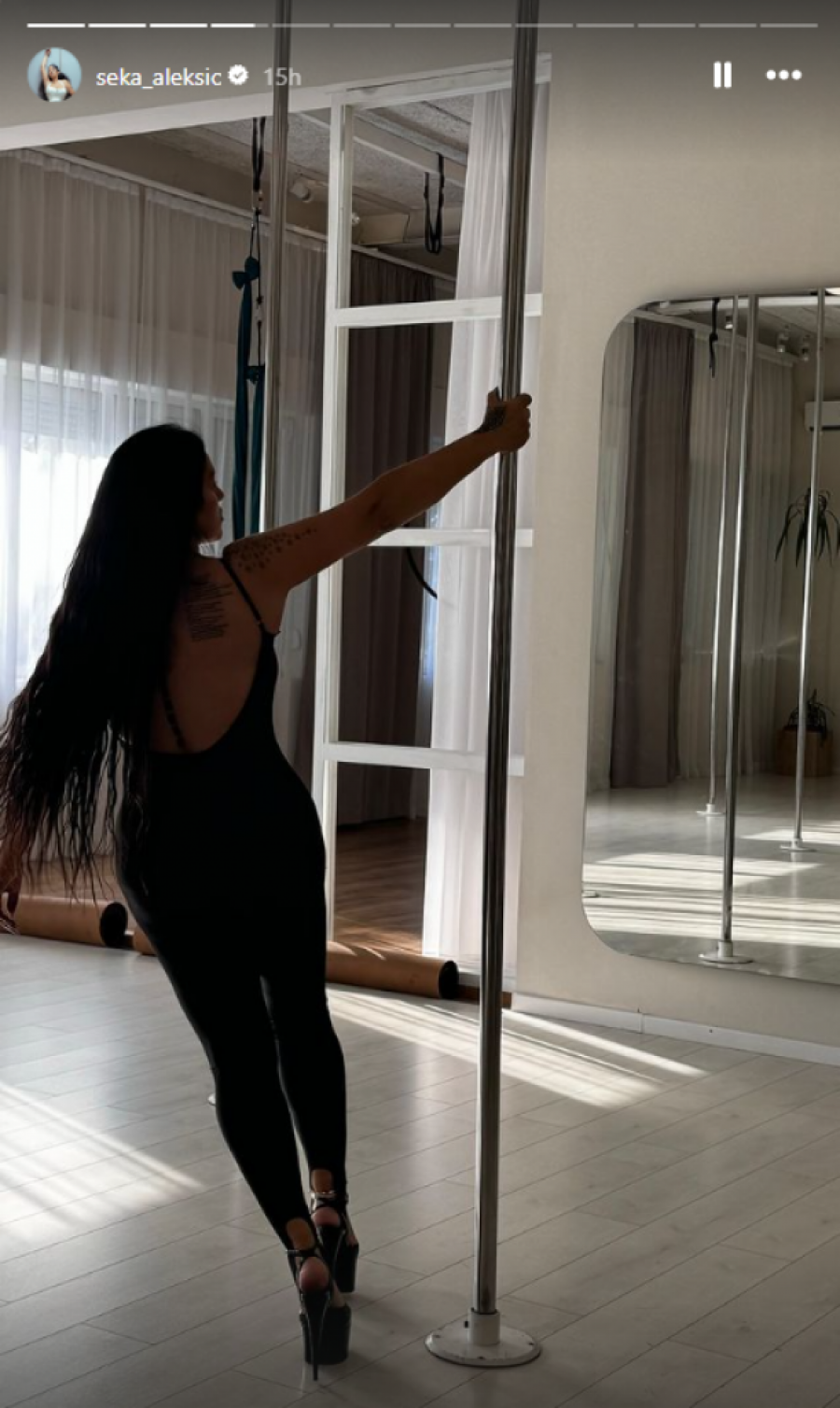 Pevačica Seka Aleksić izazvala je veliku pažnju javnosti objavom snimka na kom igra oko šipke. Naime, kako se na snimku može videti, Seka se pojavila u elastičnom kombinezonu sa golim leđima i visokim štiklama, dok je sa neprestanim osmehom na licu izvodila svoje zavodljive plesne pokrete.