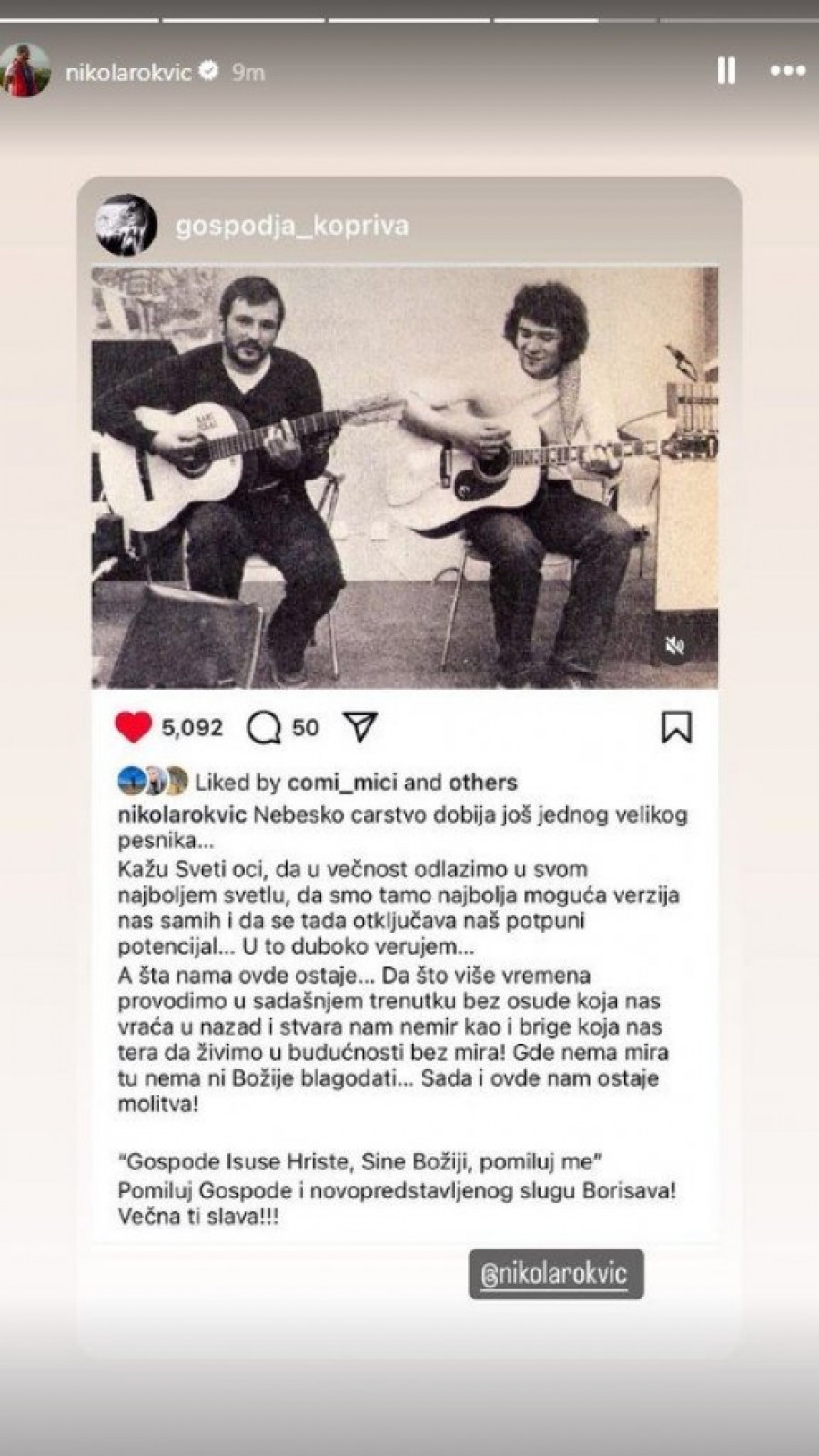 Naime, pevač Nikola Rokvić se na Instagramu oprostio od muzičara.