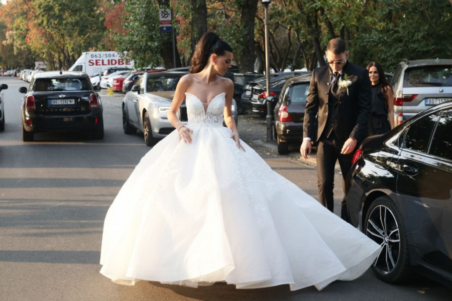 Jovana Ljubisavljević, koja je u blaženom stanju, zablistala je u venčanici koja je očarala sve prisutne. Njen trudnički sjaj upotpunio je izgledom koji je odisao elegancijom i sofisticiranošću.