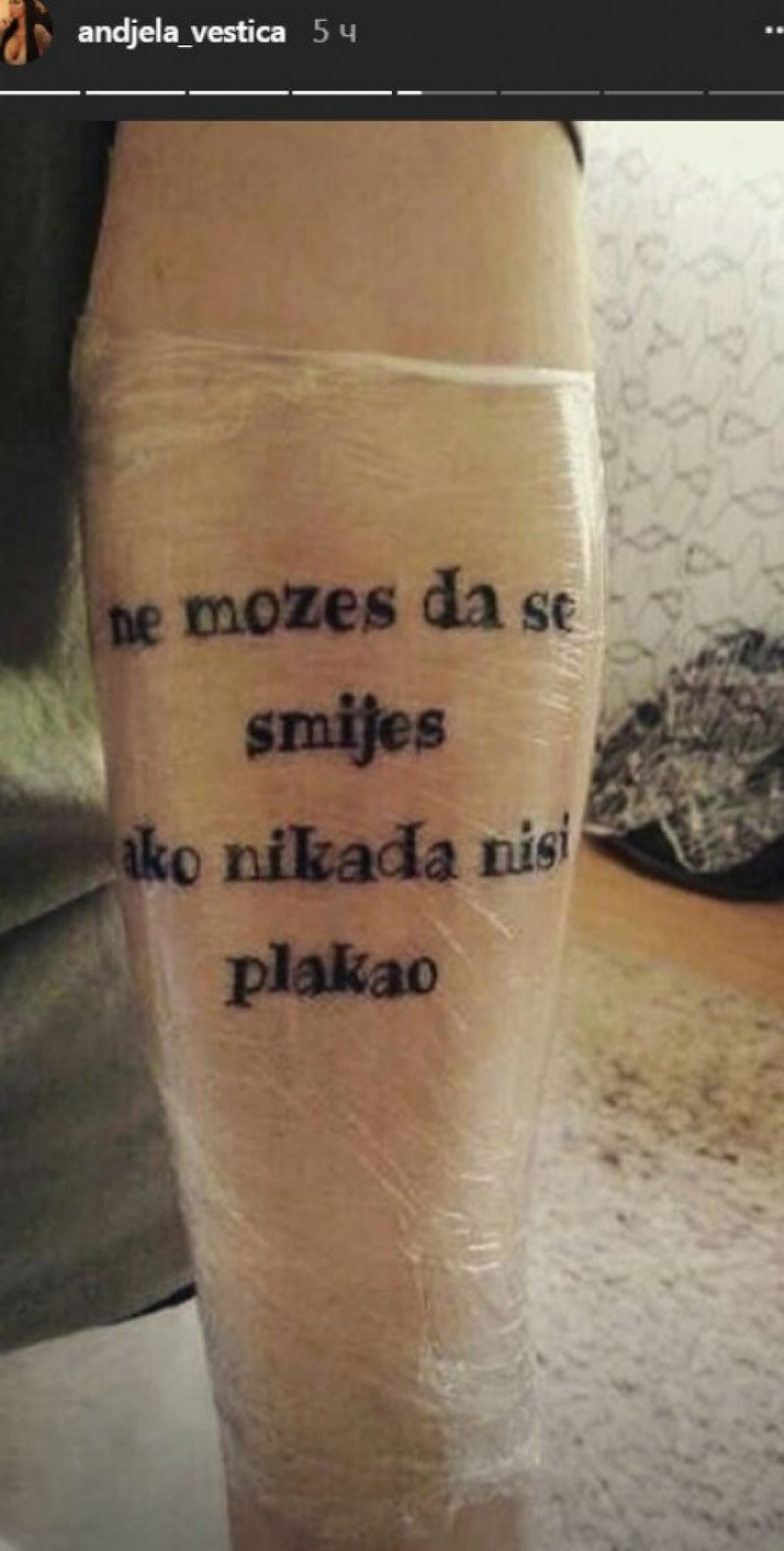 Tako da nije bilo ništa iznenađujuće to što je svoje telo ukrasila još jednom u nizu. Anđela je ovoga puta istetovirala reči svoje pesme "Crna duša".