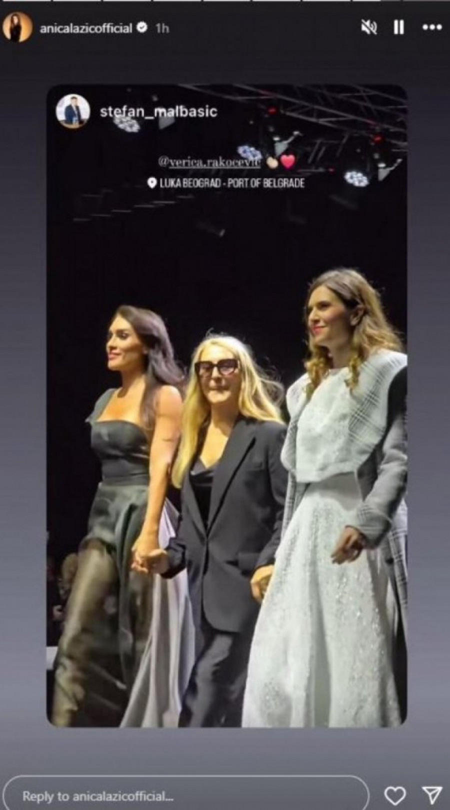 Mlada glumica Anica Lazić sinoć je zatvorila poslednju reviju modne kreatorke Verice Rakočević, privlačeći pažnju svojom pojavom na pisti. Noseći elegantnu sivu kreaciju, Anica je blistala dok ju je glumac Lazar Ristovski, njen izabranik, ponosno posmatrao iz publike. Njihova prisutnost na događaju nije prošla neprimećeno, a Lazar je putem društvene mreže Instagram javno izrazio svoje oduševljenje Aničinim uspehom.