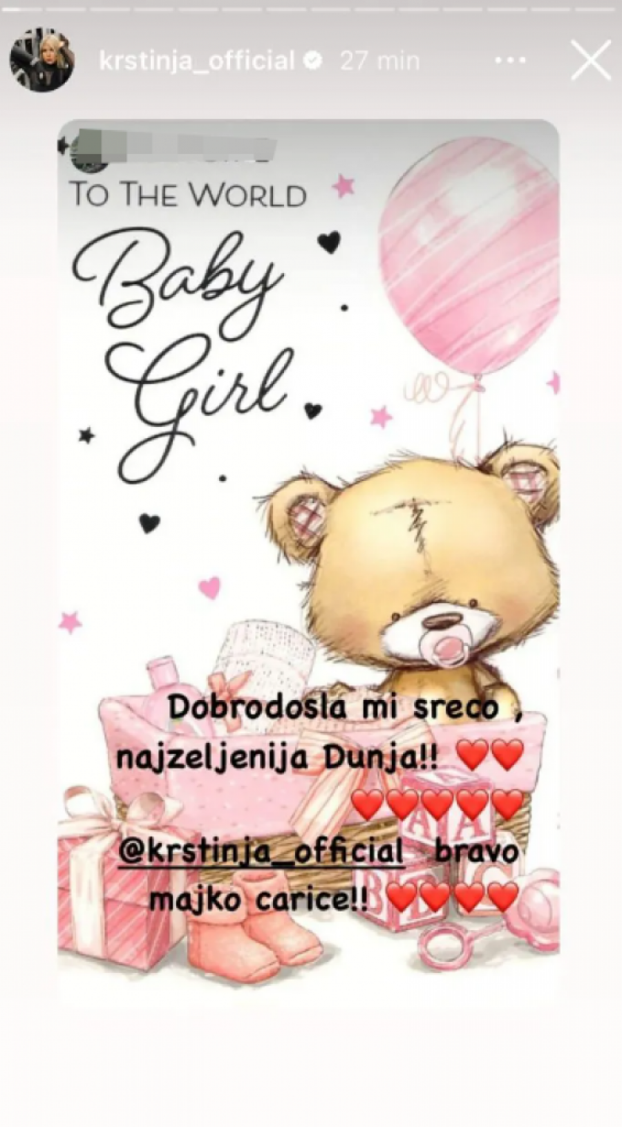 Pevačica koja je poznata i po transformaciji koju je doživela je na svet donela ćerku kojoj je zajedno sa svojim partnerom Radovanom dala ime Dunja. Iako je trudnoću krila od javnosti, Krstinja je sada srećna majka i kako prenose domaći mediji, obe su dobro.