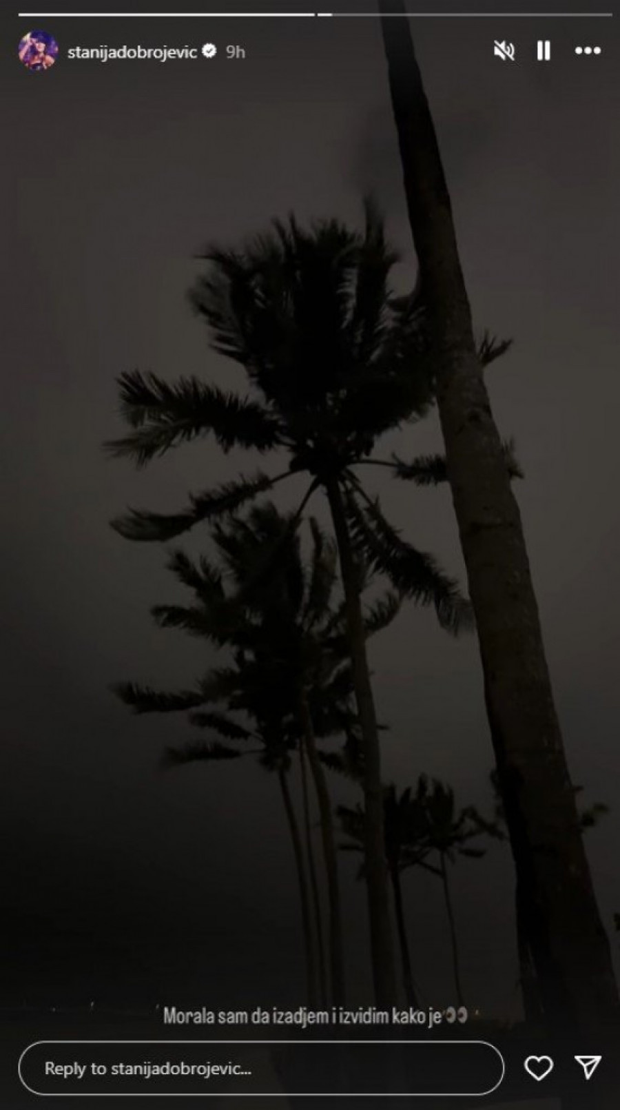 Nakon toga, Stanija je odlučila da prošeta pored plaže i podelila kadrove palmi koje se njišu pod uticajem vetra.