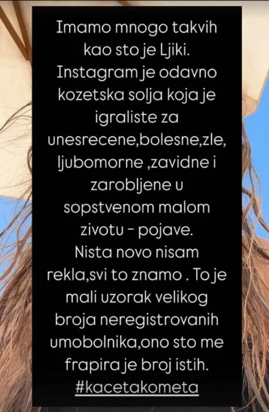 Komentar "Spodobo jedna" izazvao je burnu reakciju kod Jovane, koja je odlučila da se suprotstavi ovakvom ponašanju. Pevačica je na svom Instagram profilu podelila ime ženske osobe koja je ostavila uvredljiv komentar, izražavajući svoje ogorčenje. U svom odgovoru, Jovana je čak napisala: