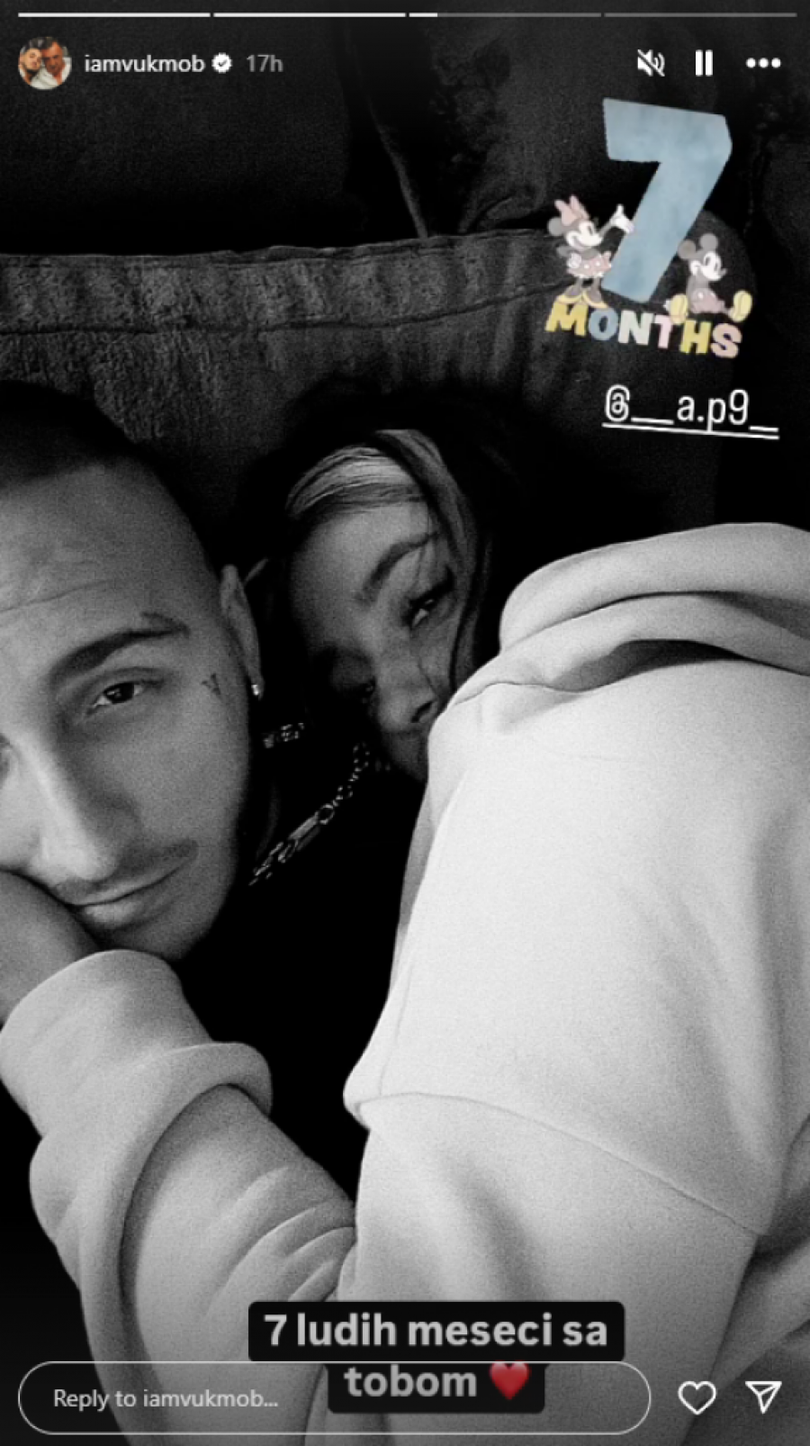 Popularni reper Vuk Mob iznenadio je svoje fanove objavom zajedničke fotografije sa devojkom iz njihovog kreveta, uz emotivnu poruku u kojoj je istakao da je prošlo sedam "ludih" meseci od kako su zajedno.