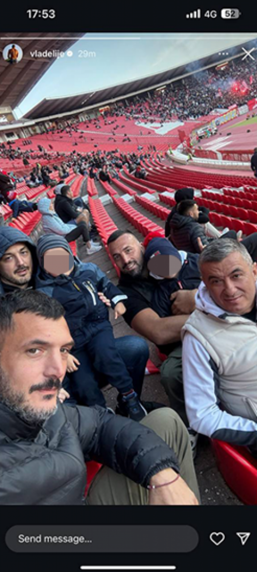 Vladimir je na Instagramu okačio sliku sa utakmice, dok je kasnije sa ekipom i bodrio tim za koji navija.