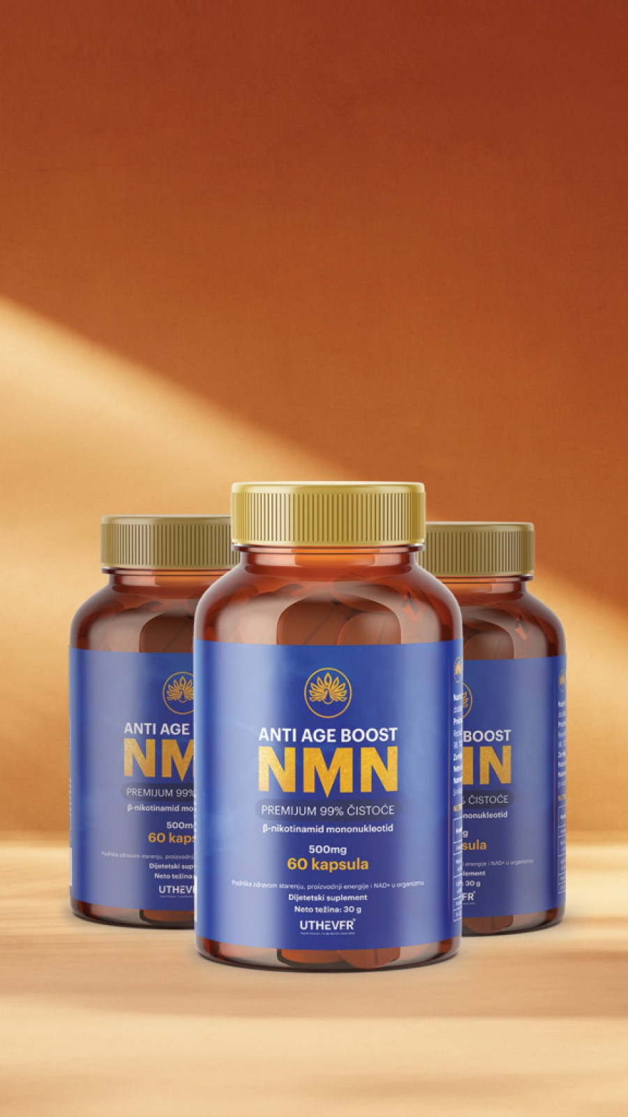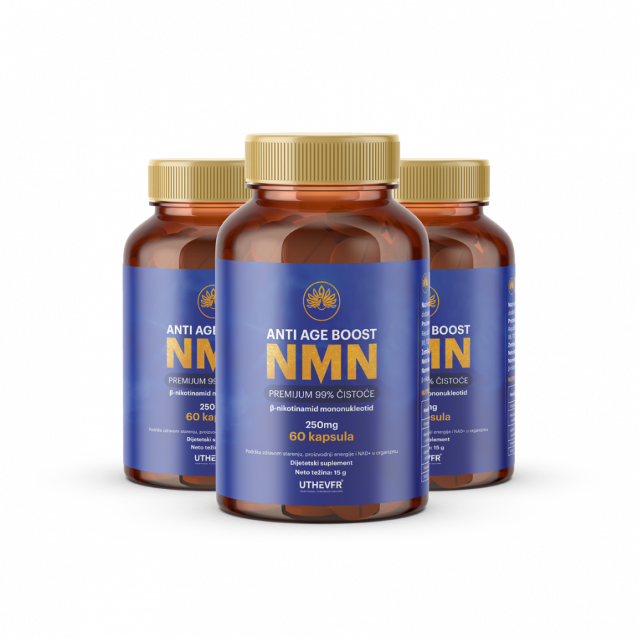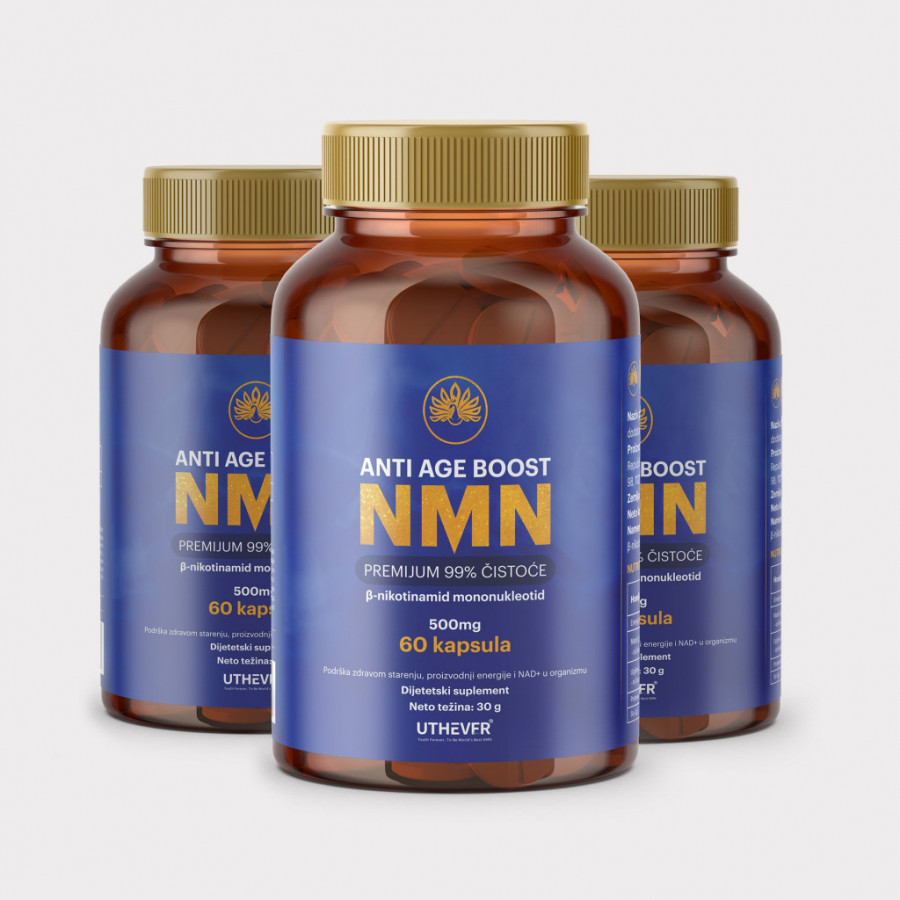 Naime, NMN prirodno povećava nivoe NAD+, molekula ključnog za mnoge biološke procese u telu, uključujući popravku DNK i proizvodnju ćelijske energije. NMN se nalazi u malim količinama i u krastavcu, kupusu, avokadu i brokoliju, a naše telo ga sintetiše iz vitamina B3. Ipak, ovaj proces je spor, a količine NMN koje unosimo hranom su često nedovoljne, tako da i nivo NAD+ neće biti na zadovoljavajućem nivou.