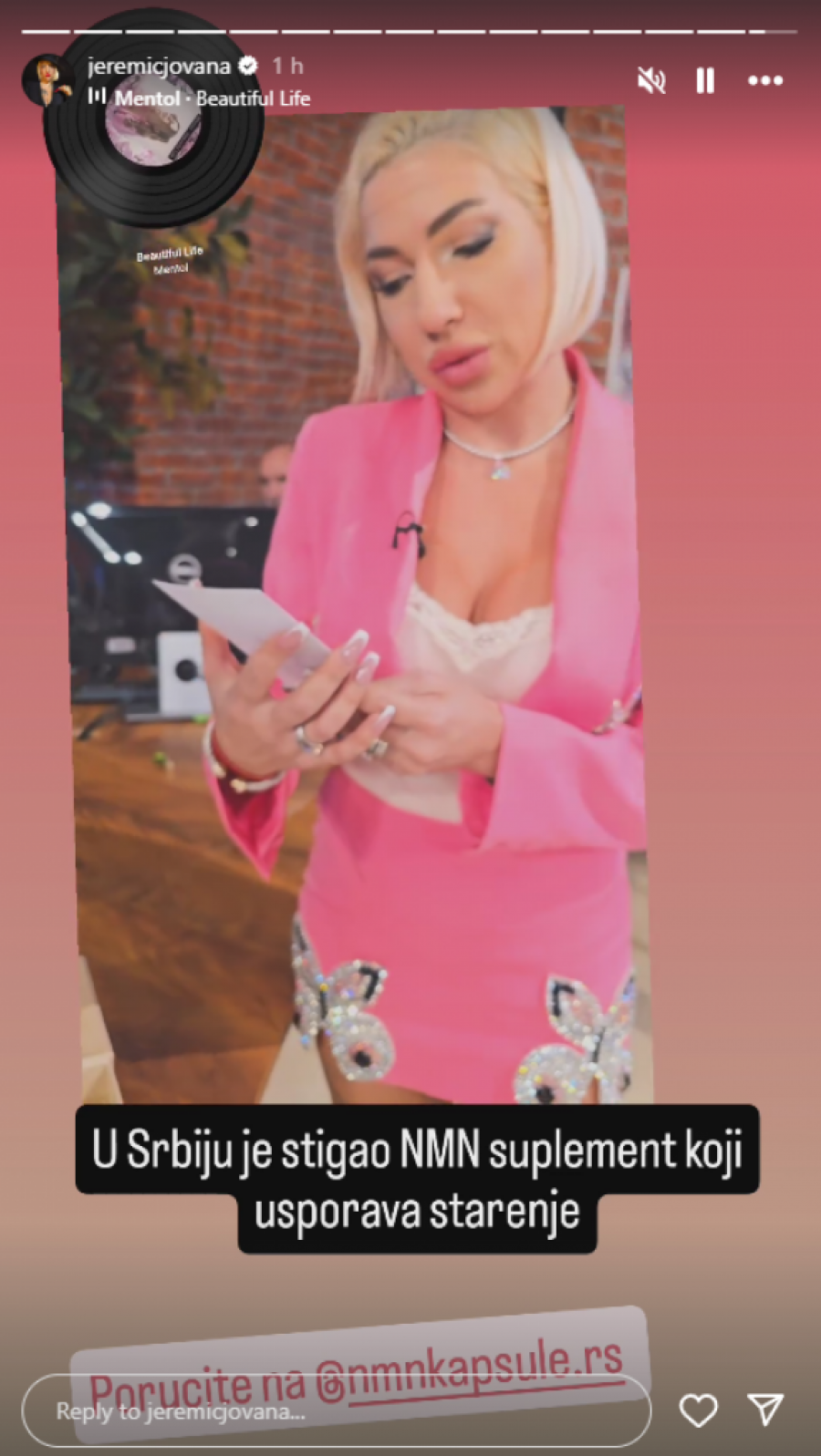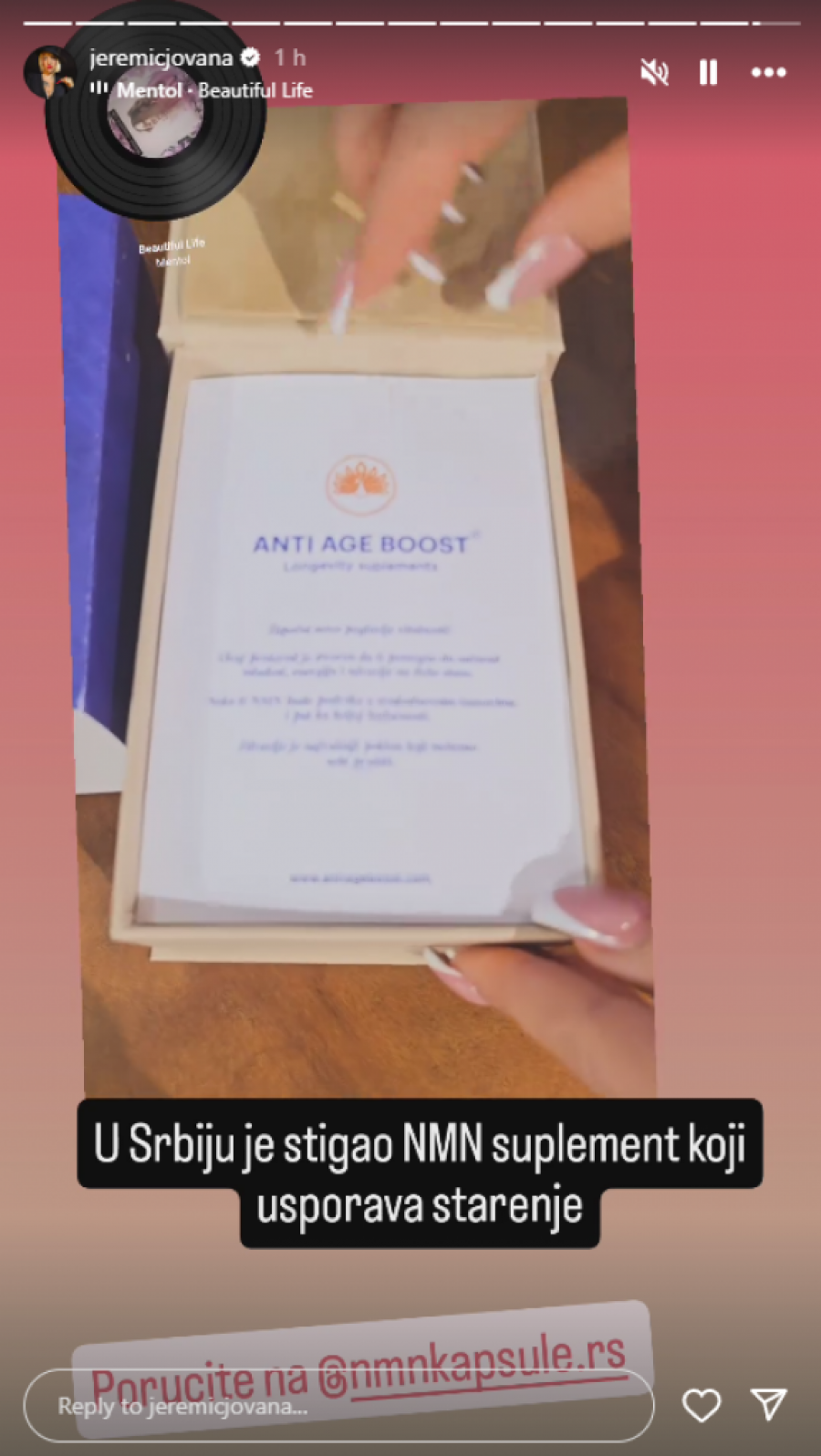 Jovana Jeremić pohvalila se svojim pratiocima na Instagram profilu da je počela sa konzumiranjem ovog moćnog suplementa NMN kapsule, te ne krije svoje oduševljenje ovim proizvodom.